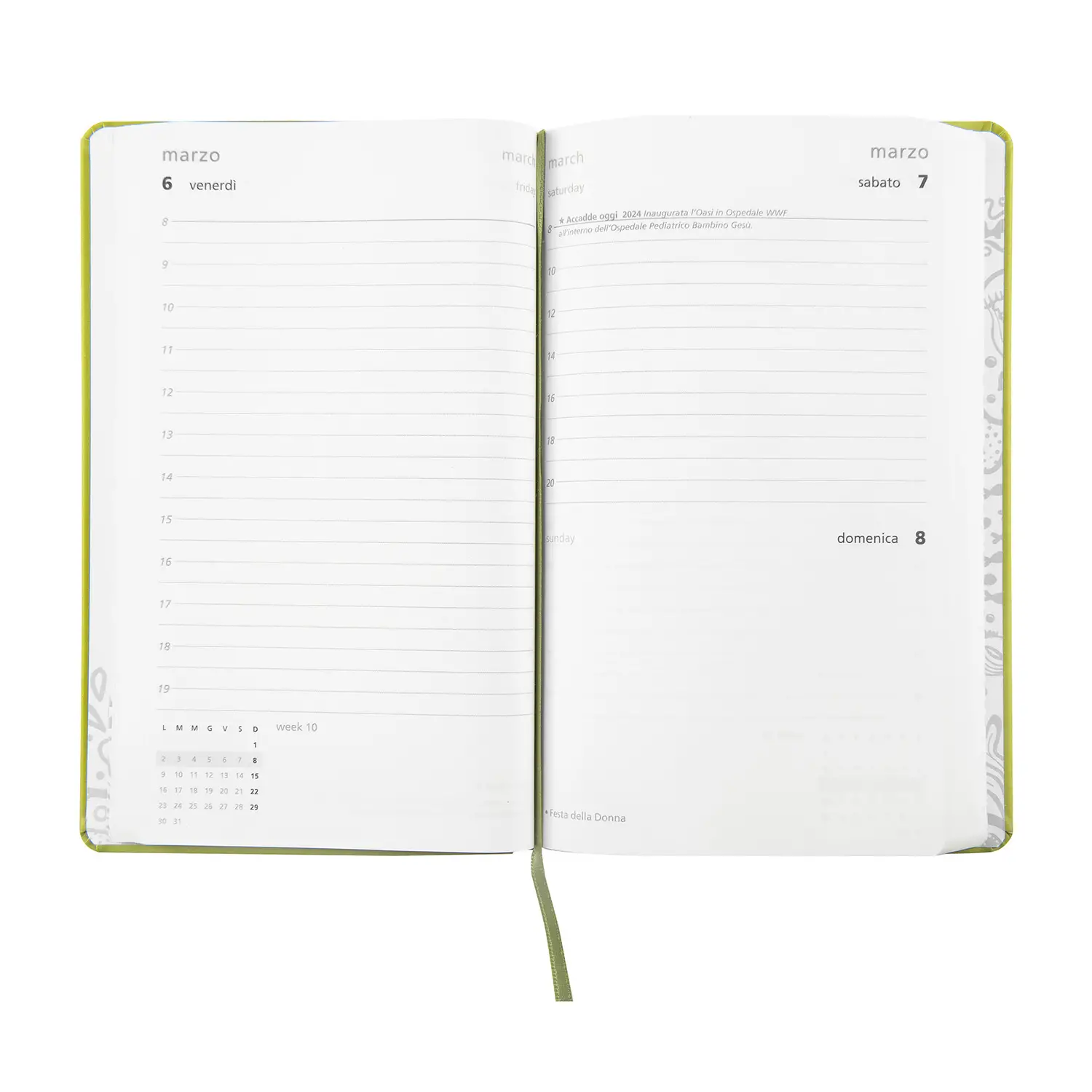 Collezione WWF disponibile in vari formati e colori (verde e azzurro), sia in versione giornaliera che settimanale, per adattarsi a ogni esigenza.