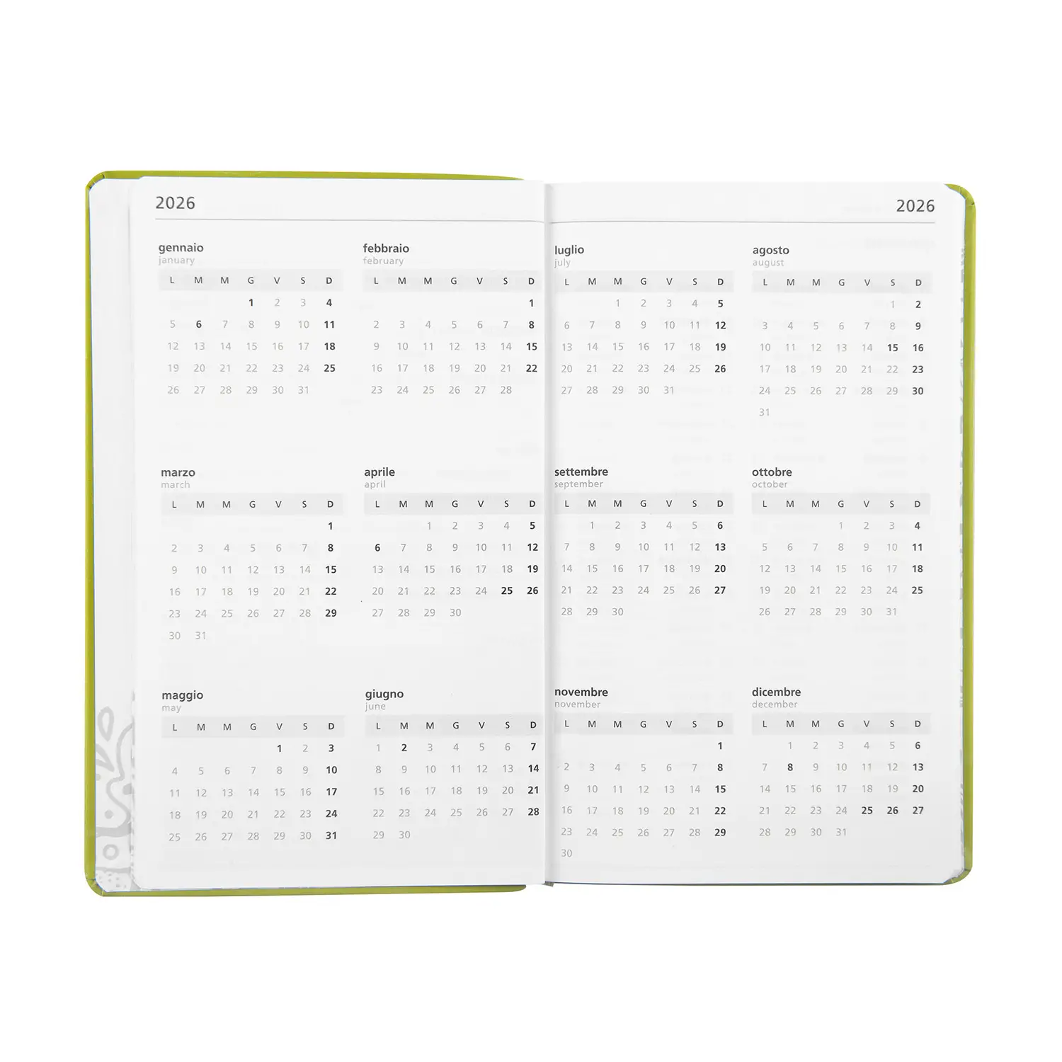 352 pagine giornaliere complete di calendario e planner annuale 2026, ideali per tenere sempre sotto controllo impegni e obiettivi.