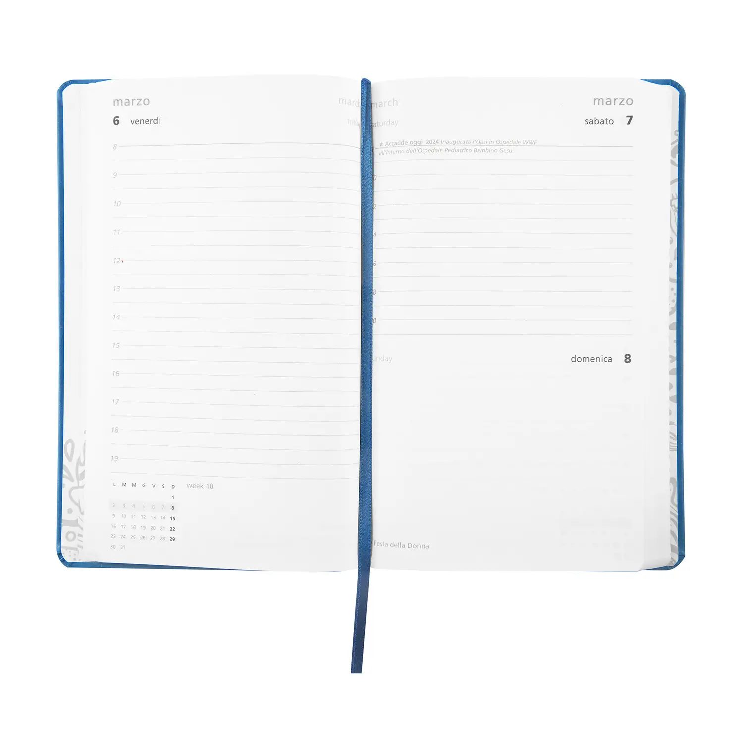 Chiusura sicura grazie all’elastico integrato e ai doppi segnalibri, per mantenere ordine e praticità in ogni momento della giornata.