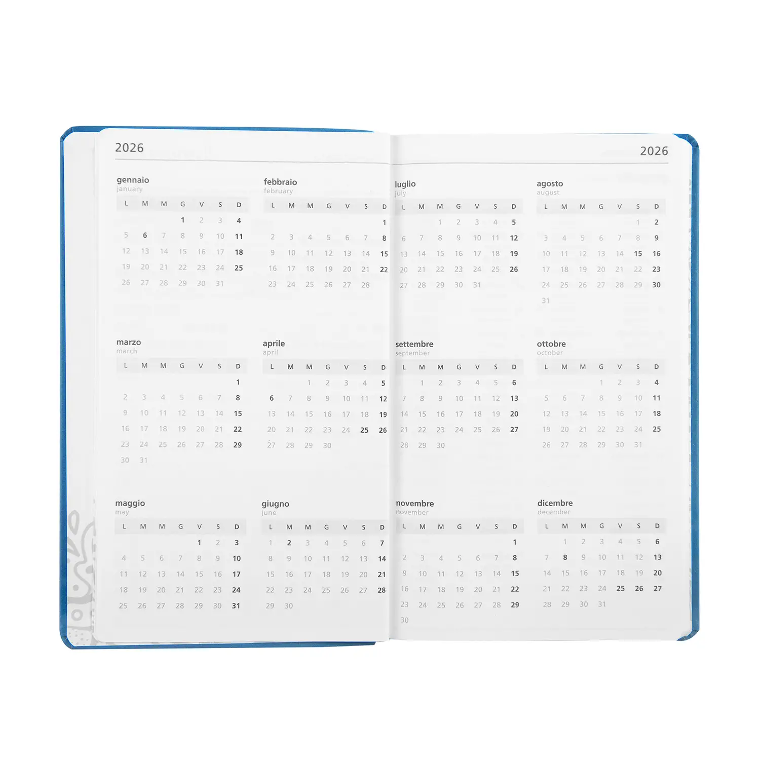 352 pagine giornaliere dedicate a note, appuntamenti e pianificazione, con calendario e planner 2026 per una visione completa dell’anno.
