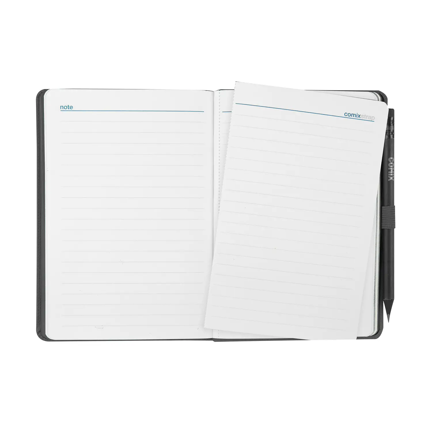 Accessori inclusi dotata di passante elastico laterale porta penna o matita e matita Comix inclusa, per avere sempre a disposizione gli strumenti di scrittura essenziali.