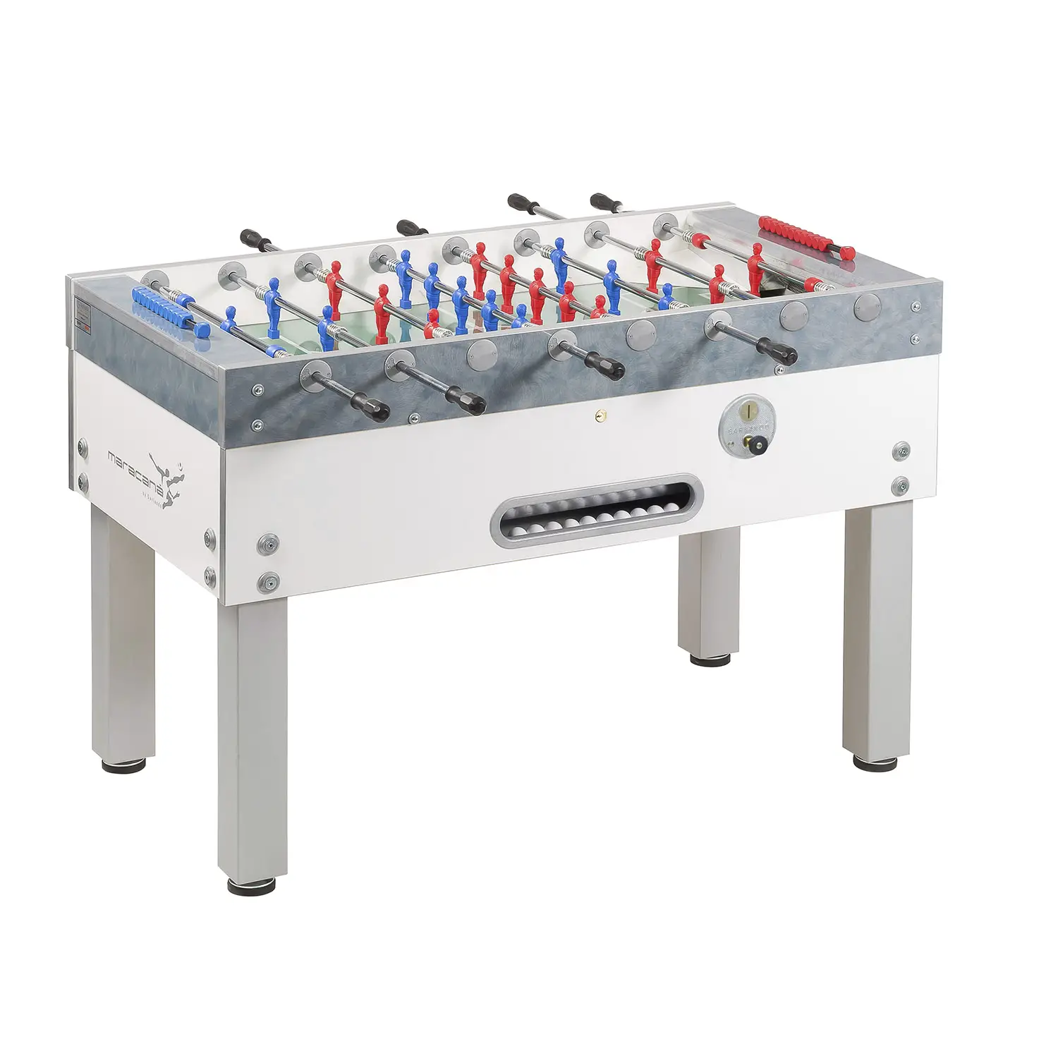 Il Biliardino Calcio Balilla Maracanà con Gettoniera White è la scelta ideale per chi cerca un calciobalilla da bar professionale, facile da gestire, estremamente resistente e sicuro.