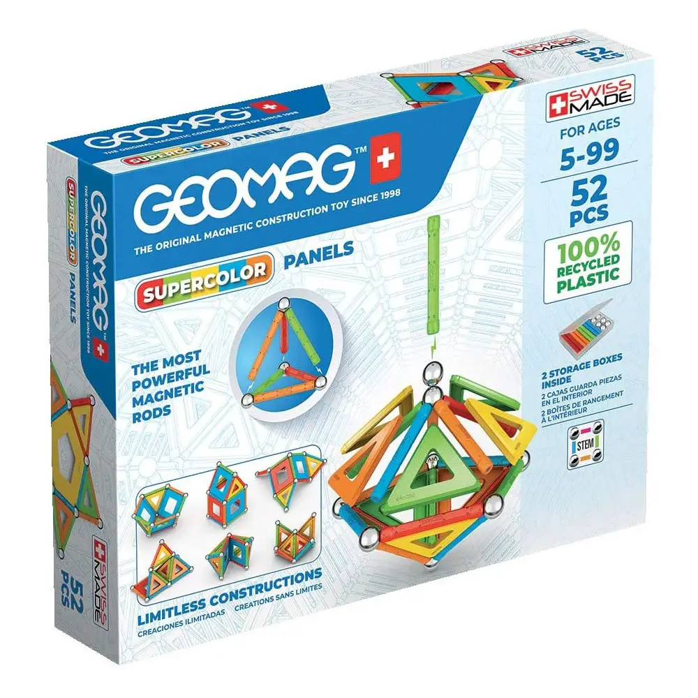 Il Geomag Supercolors Panels Green Line 52 Pezzi è ideale per chi desidera unire apprendimento STEM, gioco creativo e sostenibilità ambientale.