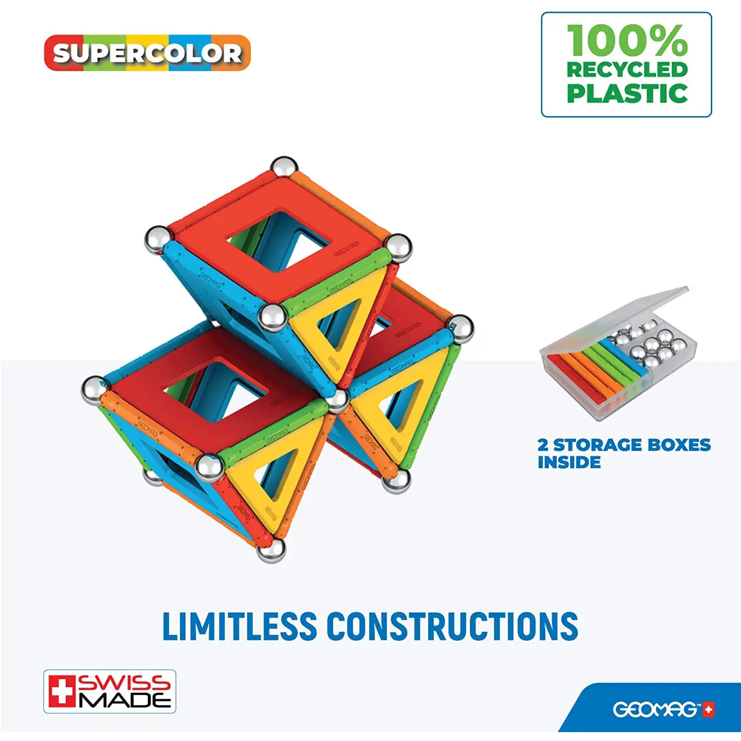 Il Geomag Supercolors Panels Green Line 78 Pezzi è perfetto per chi vuole unire apprendimento STEM, divertimento creativo e sostenibilità.
