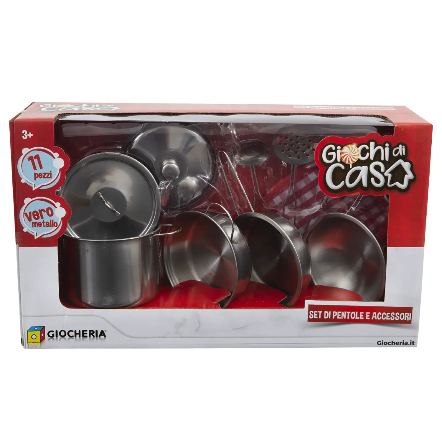- Contenuto: 11 pezzi tra pentole, padelle e utensili in vero metallo.