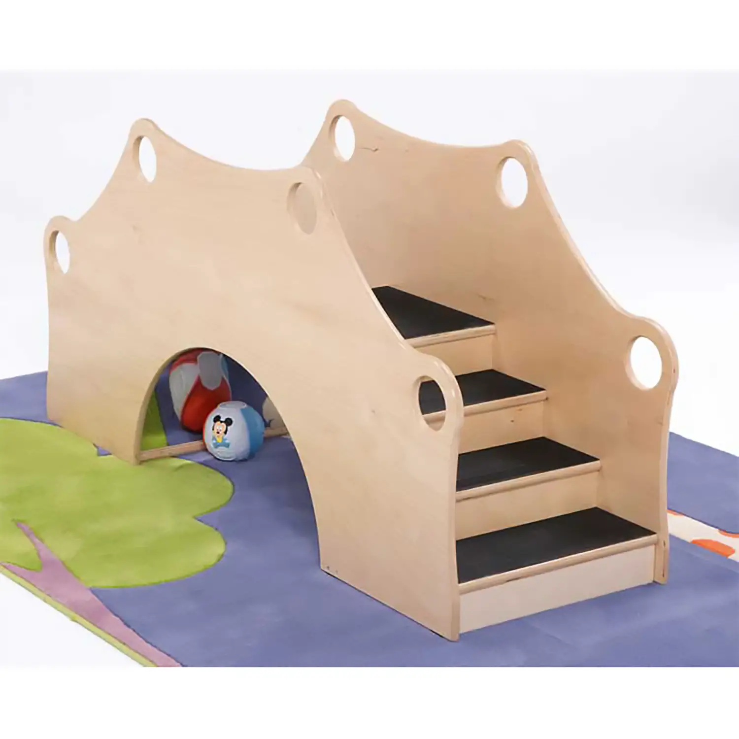 - Percorso di Movimento: Composto da 4 scalini e un piano inclinato, collegati da una piattaforma orizzontale, ideale per arrampicarsi, camminare e muoversi in modi diversi, sviluppando le abilità motorie.