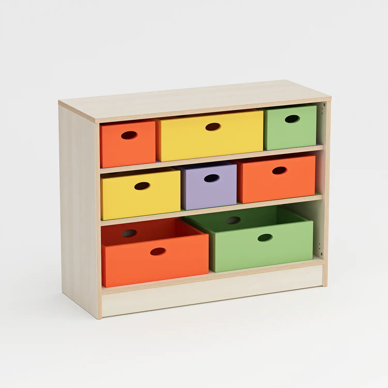 Con il mobile con 7 cassette in legno colorate GIODIARREDA, puoi organizzare giochi e materiali scolastici in modo pratico, sicuro e creativo, perfetto per ogni aula o laboratorio.