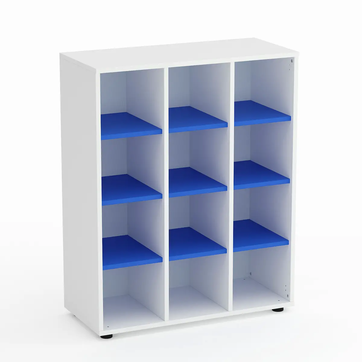 Mobile Scuola Kubò Bianco 12 Caselle H 110 cm. Ripiani Azzurro - Conforme CAM