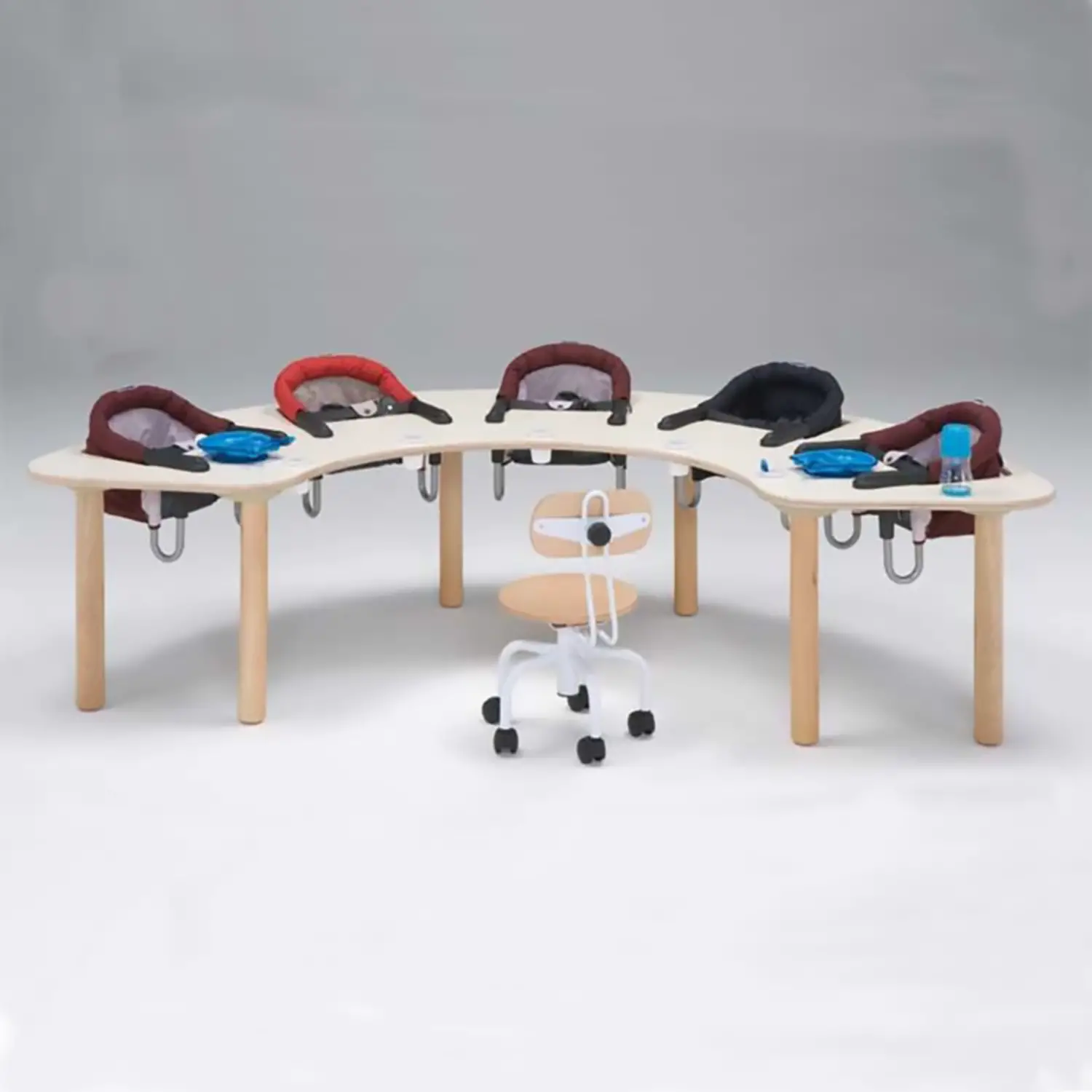 Il Tavolo Pappa Nido e Infanzia 5 Posti con seggiolini integrati è progettato per bambini in età prescolare e asilo nido, ideale per momenti di pappa, gioco e attività educative. Grazie a materiali resistenti e design sicuro, offre comfort, igiene e facilità di utilizzo.