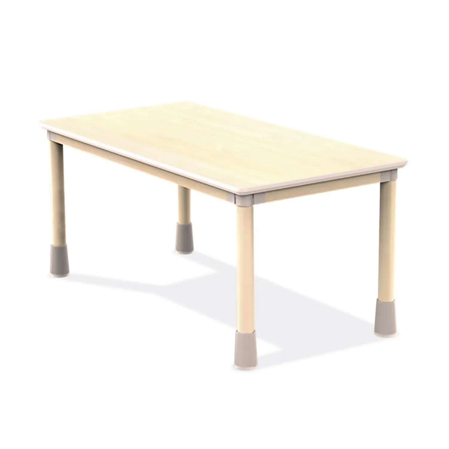 Tavolo multiuso ad altezza regolabile. Piano in conglomerato ligneo ecologico con assenza di emissioni di formaldeide - spessore 18 mm - bilaminato finitura faggio antiriflesso.
