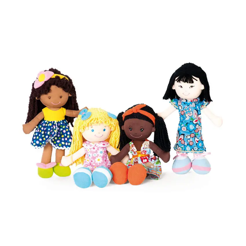 - ✅ Set di 4 bambole etniche in morbido tessuto imbottito.