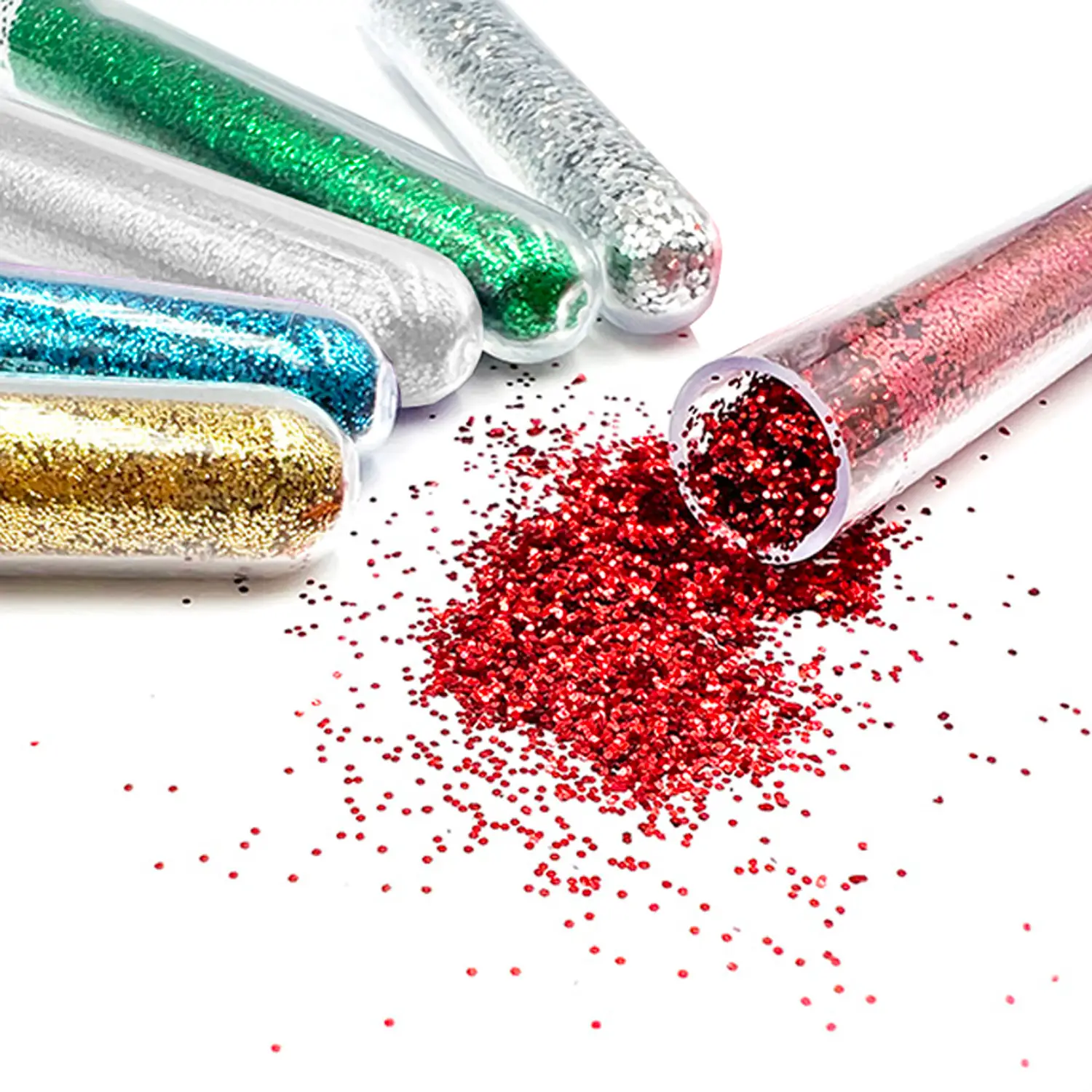 - ✅ Set 6 colori assortiti (argento, oro, rosso, blu, verde, bianco iridescente), flaconcini da 8g.