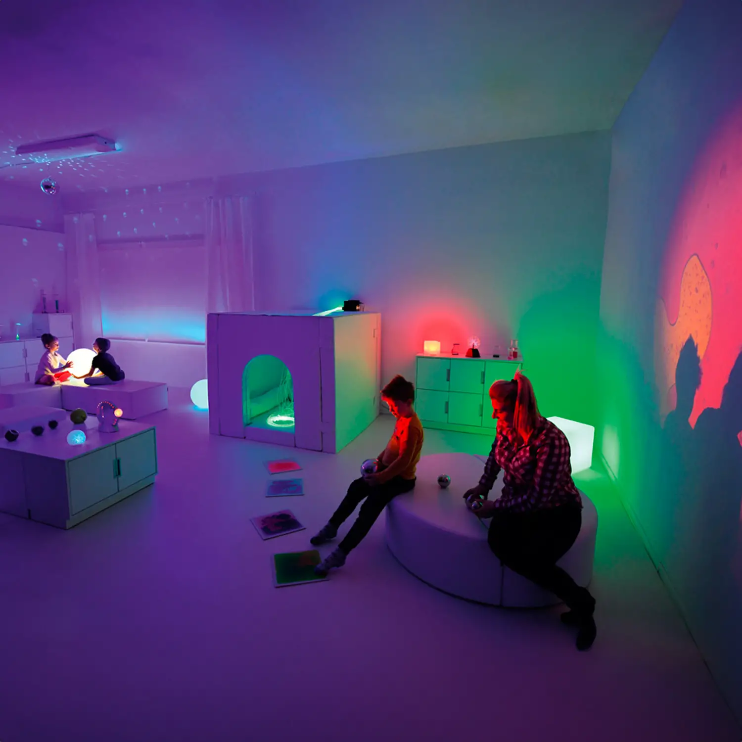 Versatile e Accessoriabile Compatibile con materassini, cuscini, pouf e materiali sensoriali, si adatta facilmente a ogni ambiente terapeutico o scolastico.