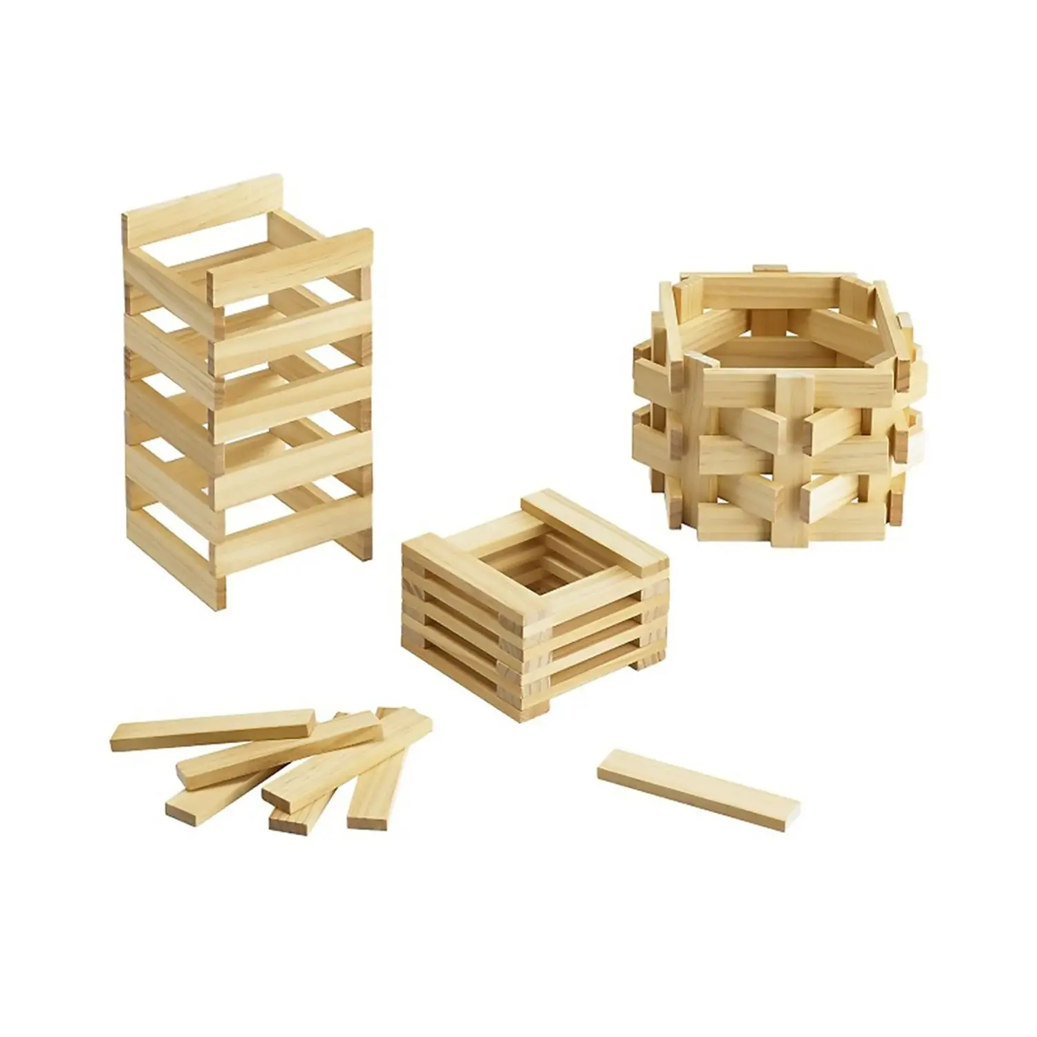 Dimensioni Uniformi: Ogni listello ha uno spessore di 8 mm e misura circa 12x2 cm. Queste dimensioni uniformi consentono ai bambini di costruire in modo preciso e stabile.