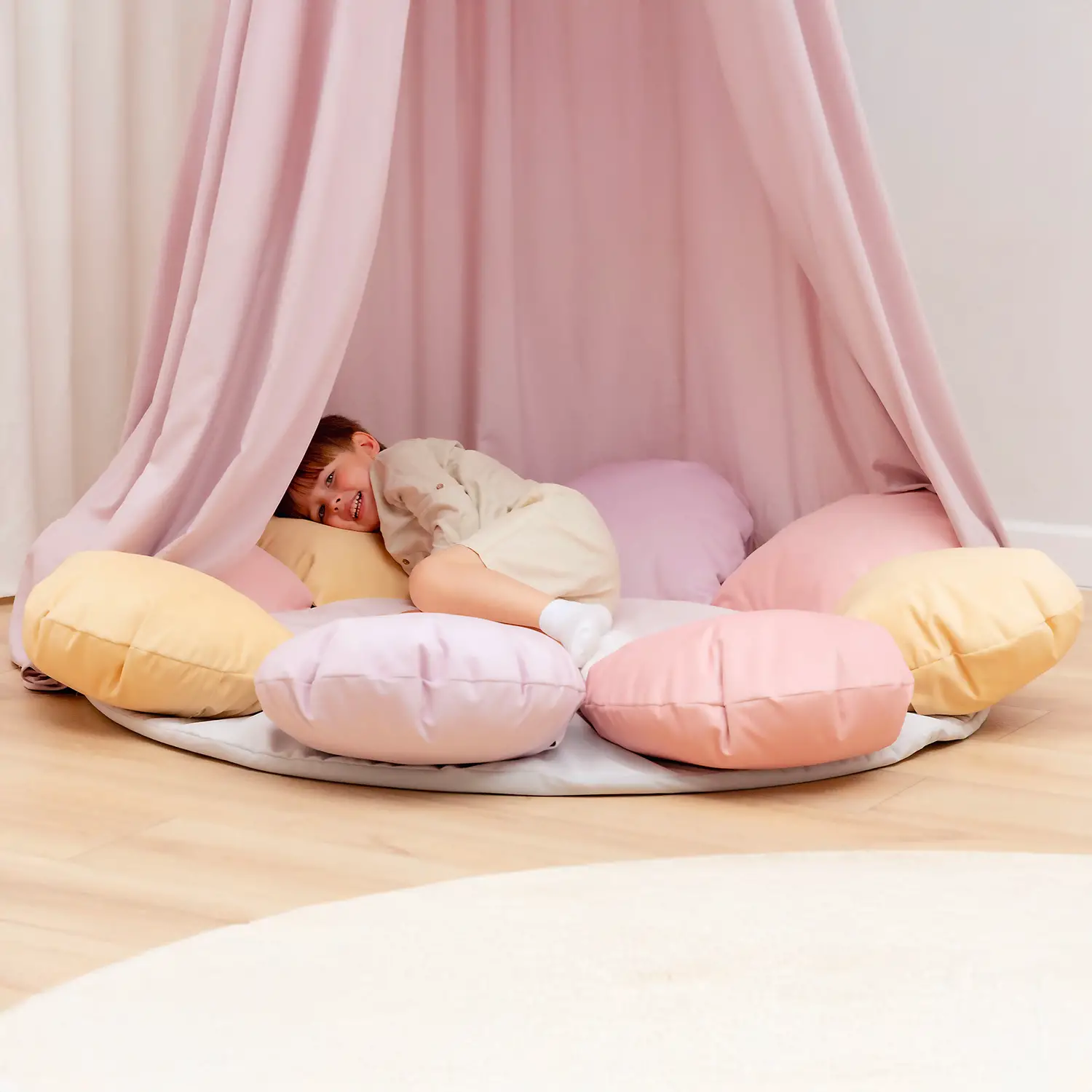 - ✅ Morbido cuscinone a forma di fiore con petali-cuscini