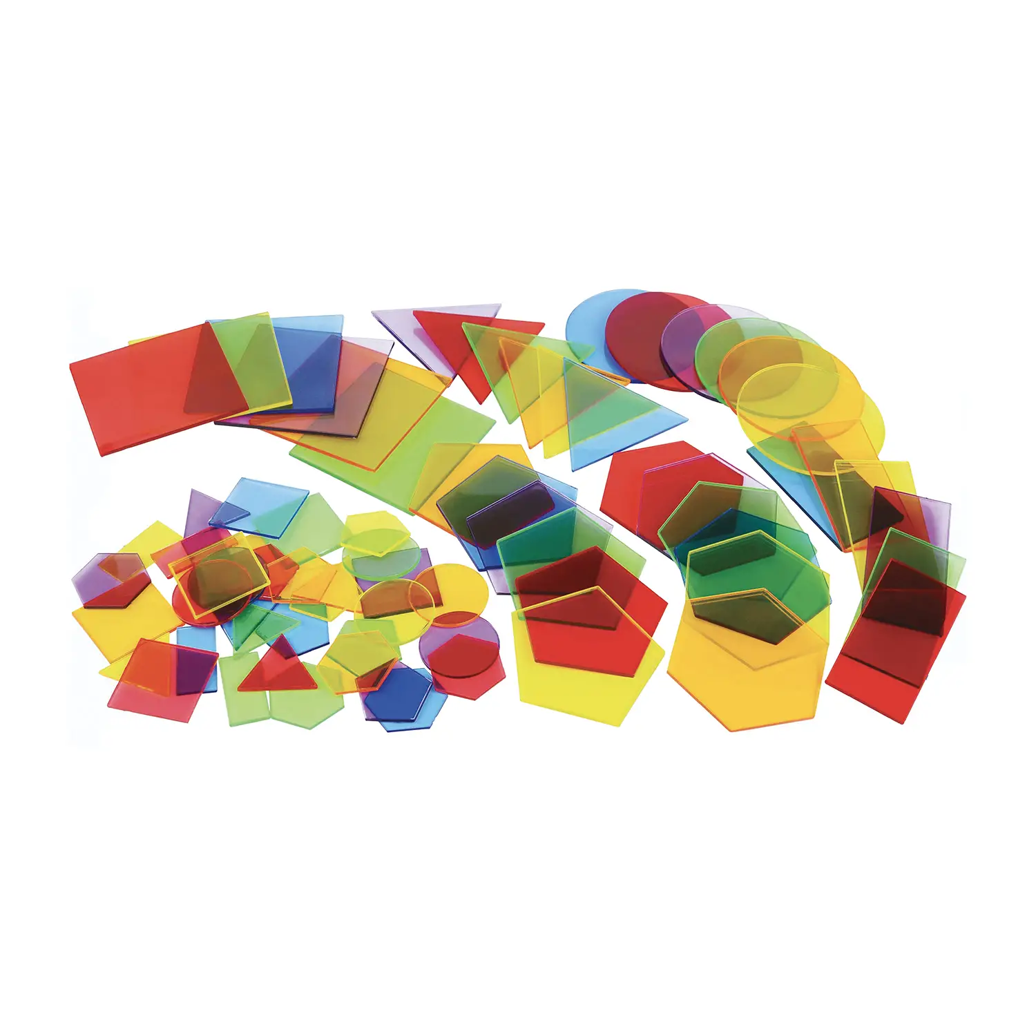 - ✅ 72 forme geometriche traslucide in 6 colori vivaci per attività didattiche.