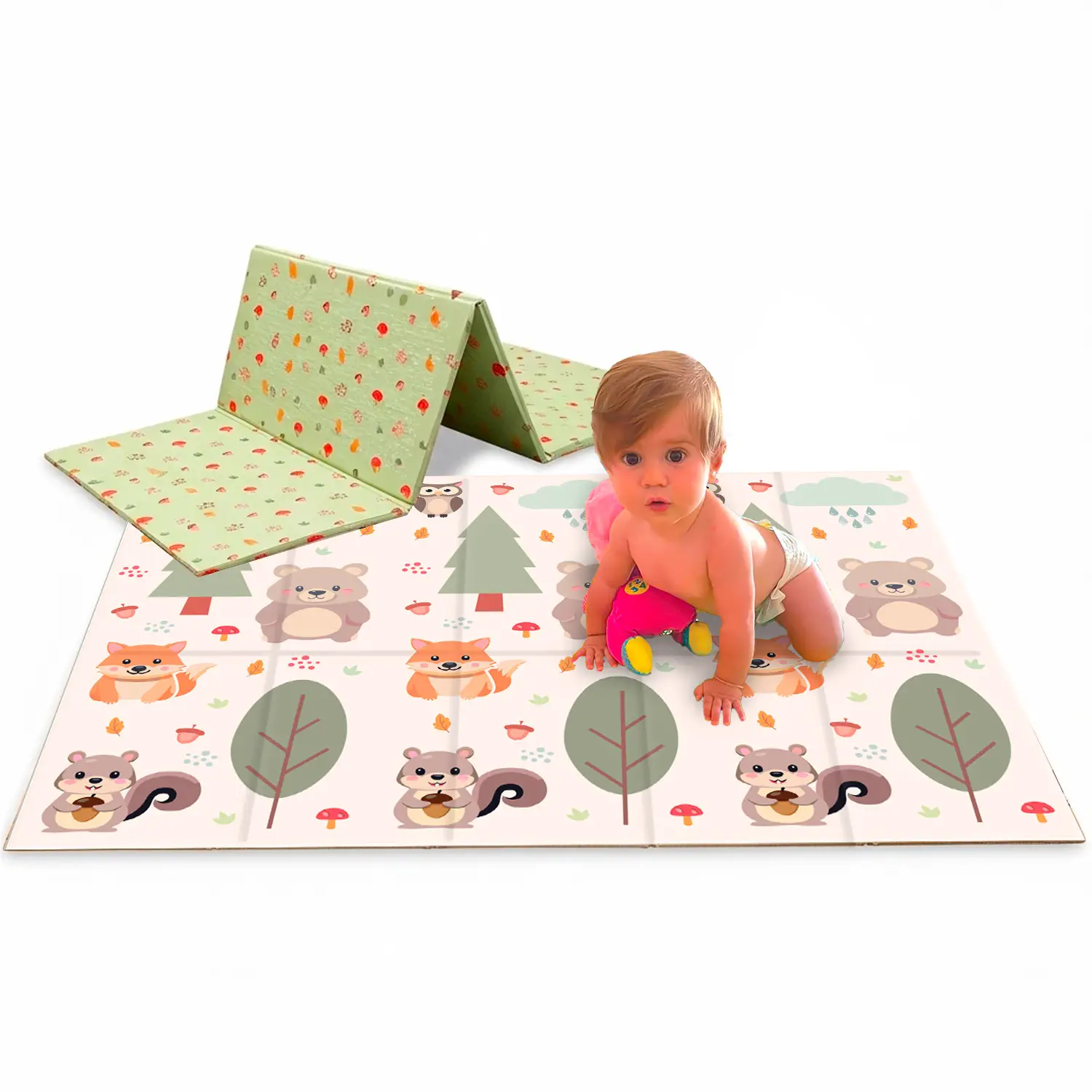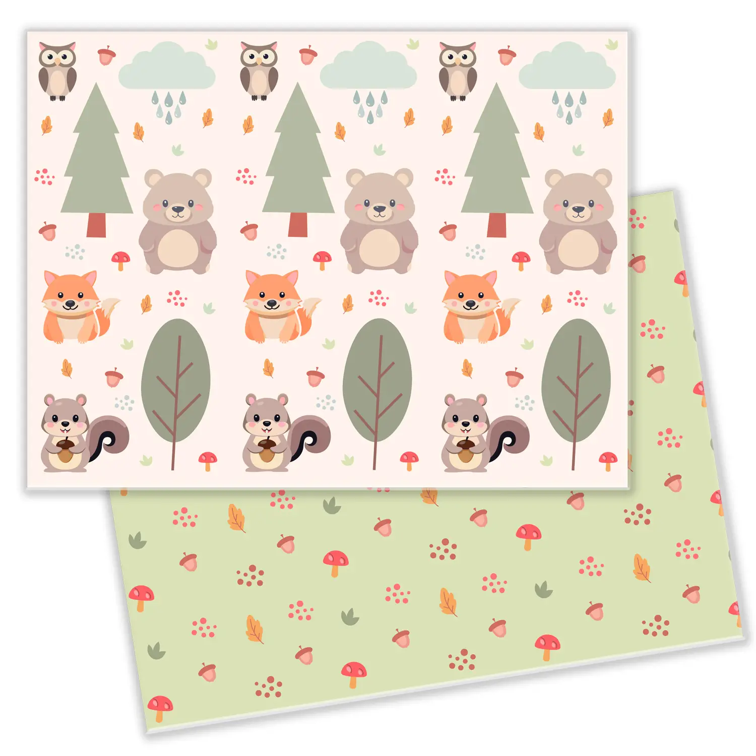 - ✅ Tappetino bifacciale con due scenari boschivi e allegri animali, dai colori caldi adatti a qualsiasi arredo.