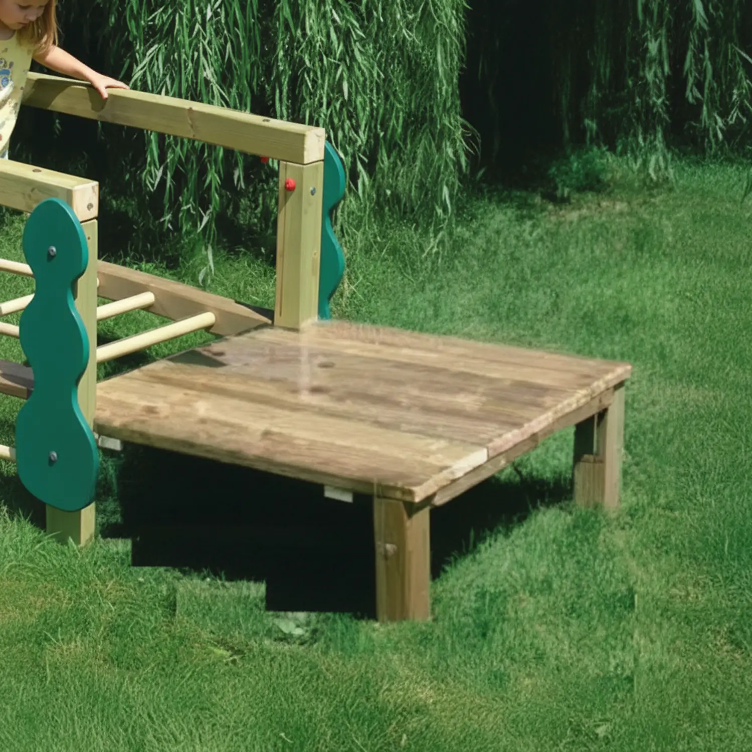 - ✅ Piattaforma in legno certificata EN 1176, ideale per parchi giochi modulari e percorsi sicuri per bambini.