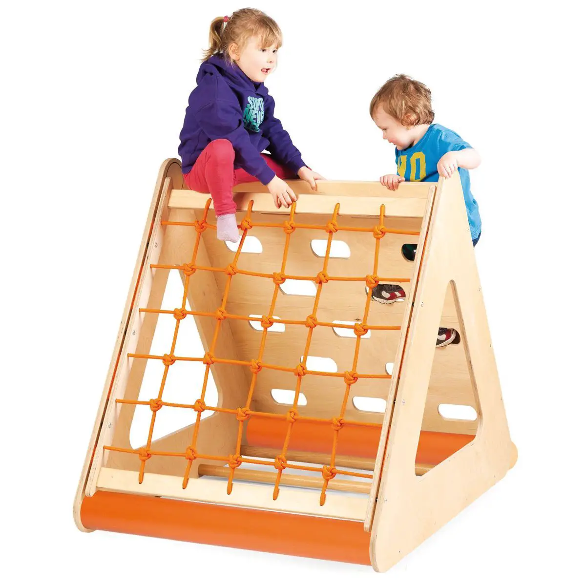 - ✅ Struttura triangolare multifunzionale in legno robusto, ideale per stimolare lo sviluppo motorio dei bambini.