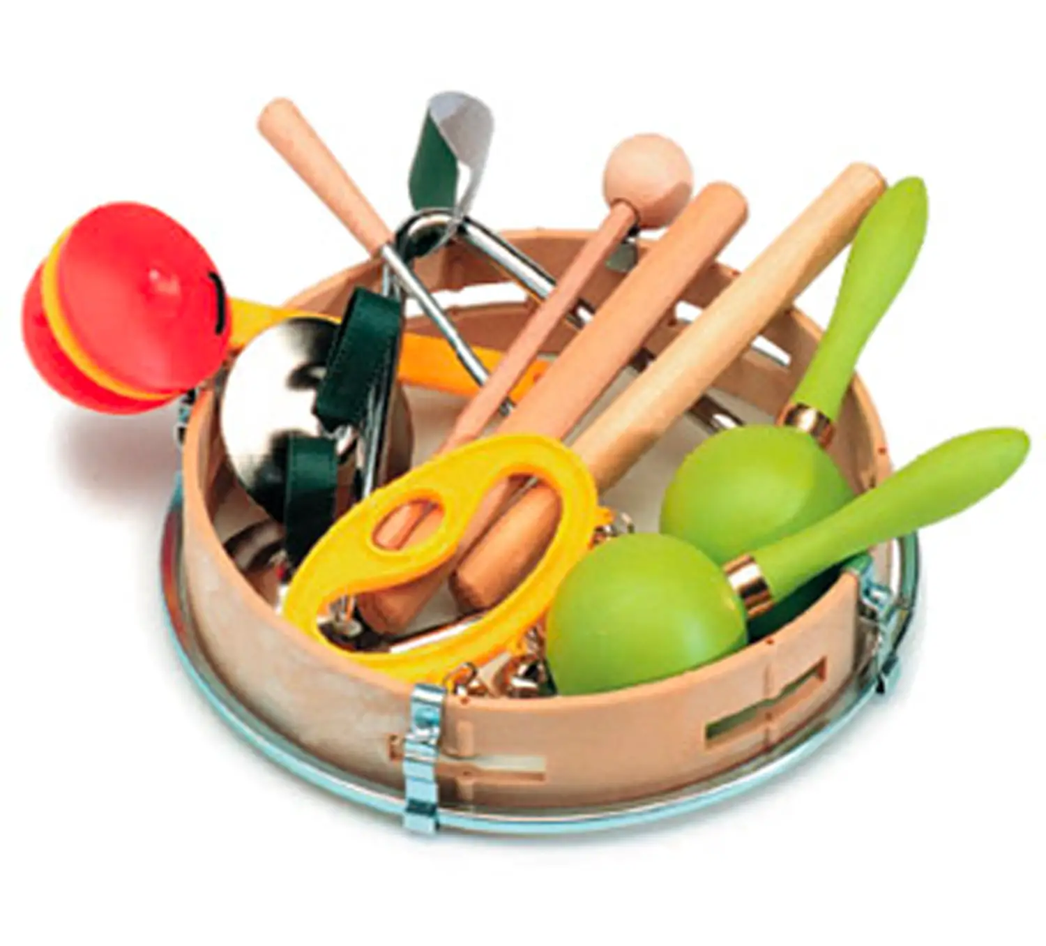 - ✅ Set completo di strumenti musicali ritmici: clave, maracas, piattelli, tamburello, triangolo e altri, per stimolare la scoperta musicale dei bambini.