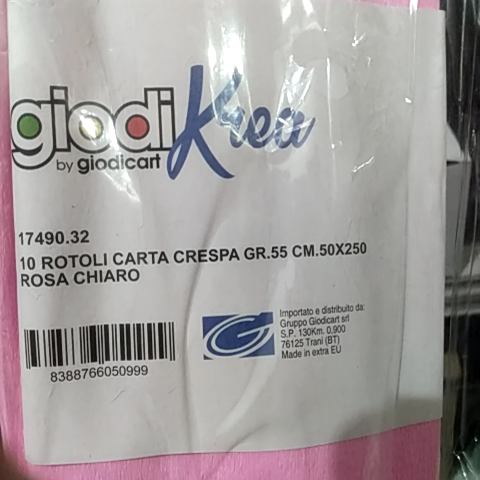 Carta Crespa Giodicrea gr. 55 10 Rotoli Rosa Chiaro