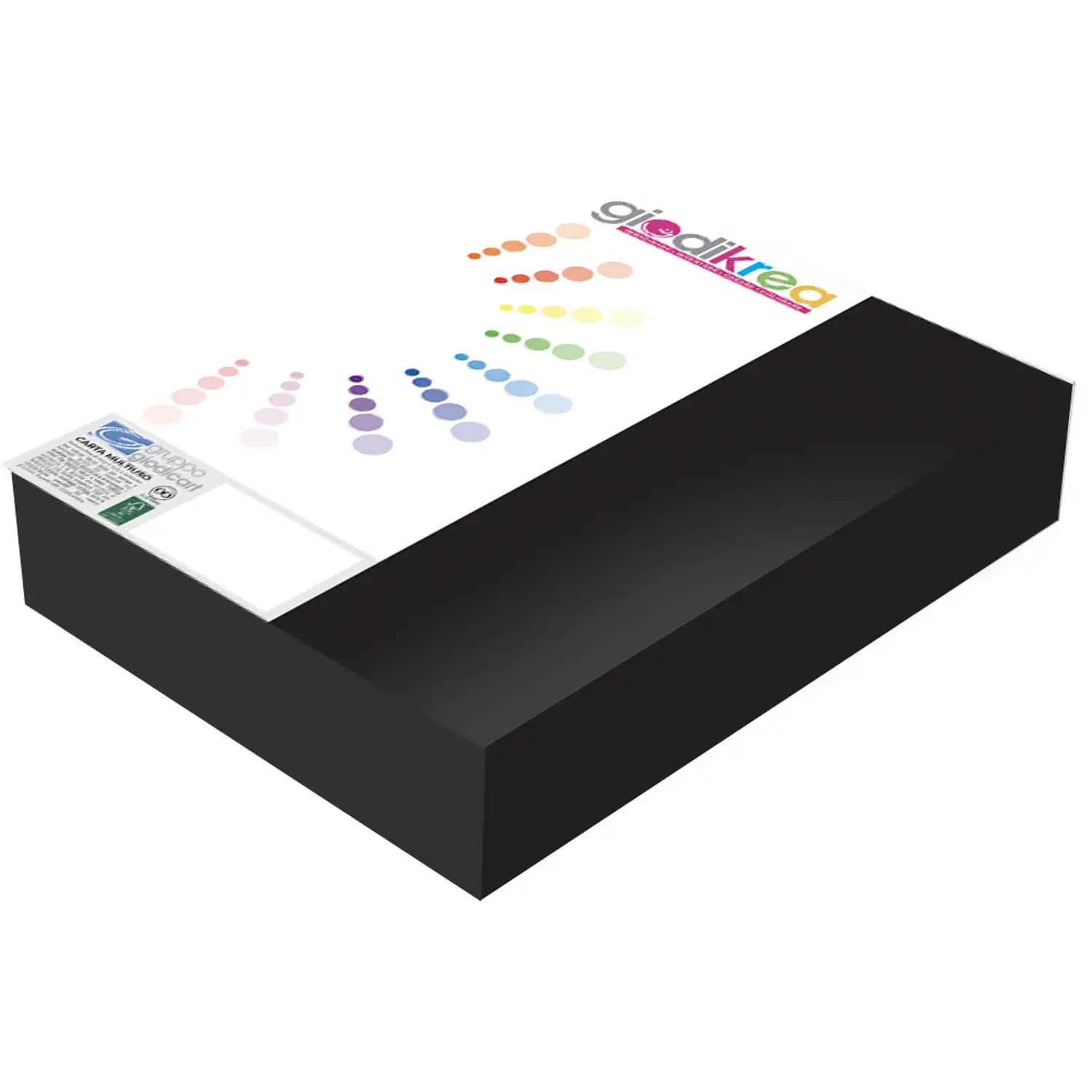 La risma di carta nera A4 Giodikrea 120 gr/mq è ideale per stampe, fotocopie, cartellonistica e progetti creativi che richiedono un forte impatto visivo ed eleganza. Grazie alla grammatura superiore e alla superficie uniforme, è perfetta per scuola, ufficio, grafica e fai da te creativo.