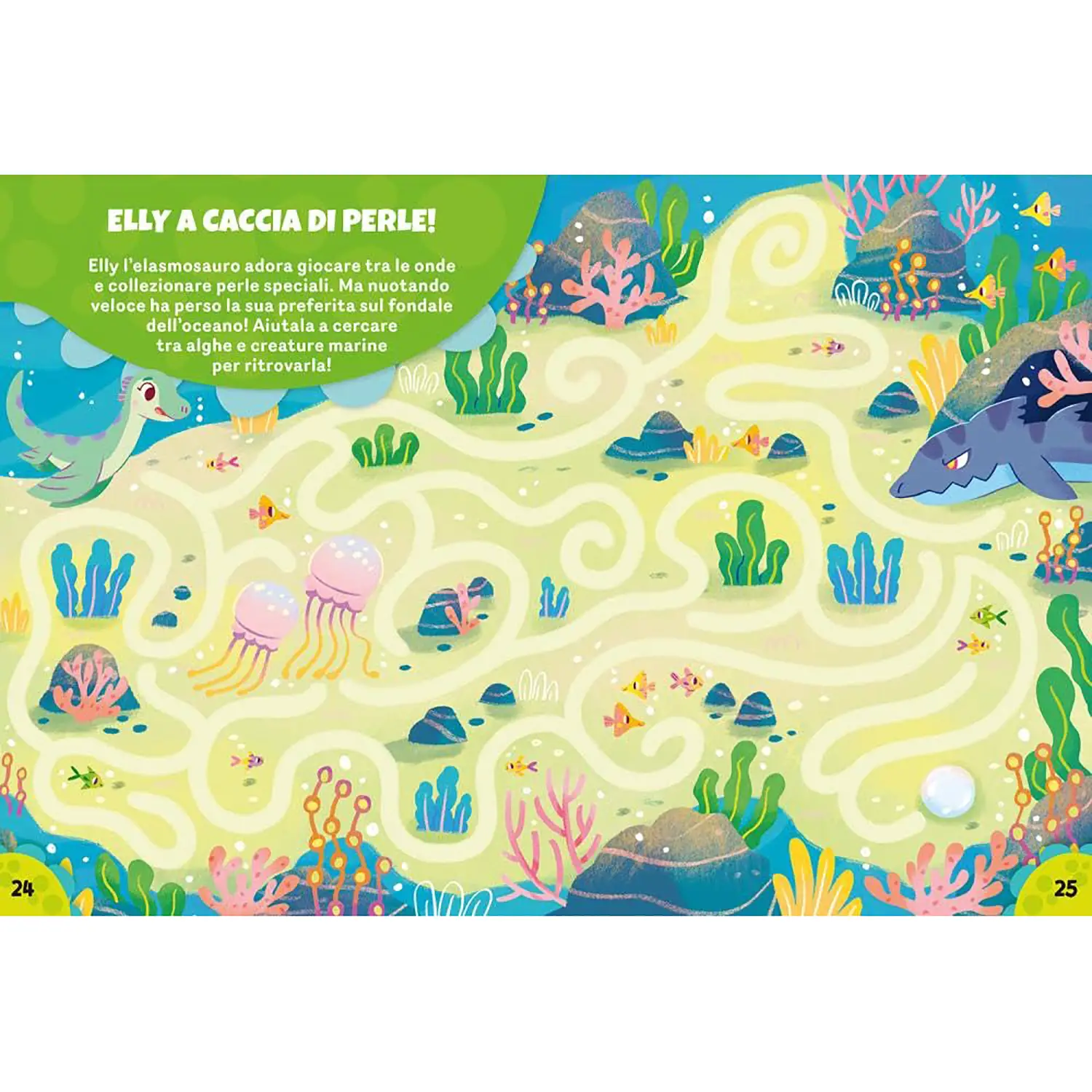 Labirinti educativi a tema dinosauri – Libro gioco pensato per bambini dai 3 anni, con percorsi e labirinti ambientati nel mondo preistorico. Aiuta i dinosauri a superare ostacoli stimolando curiosità e voglia di esplorare.