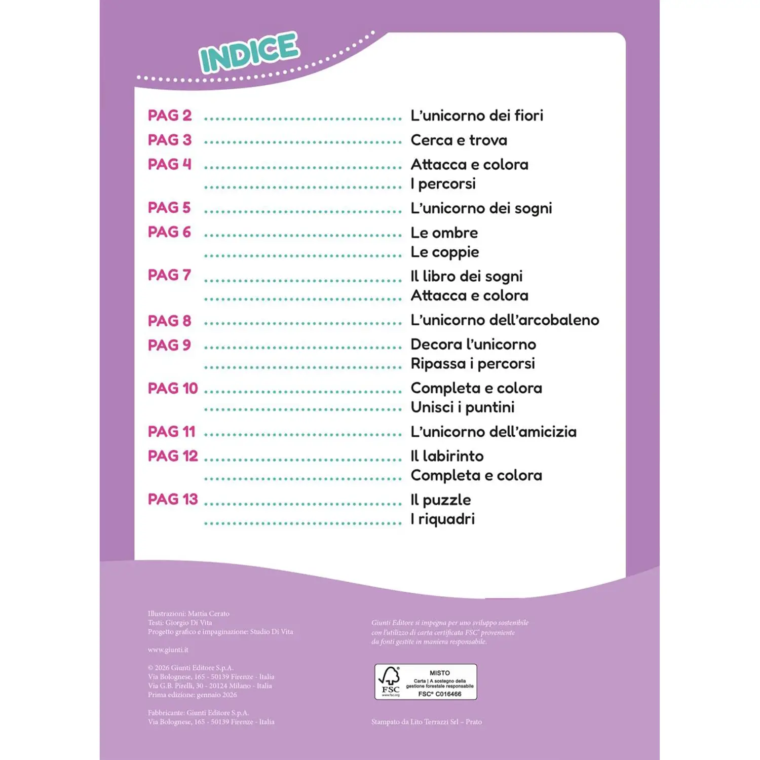 Libro gioco a tema unicorni – Albo activity pensato per bambini dai 3 anni, ambientato in un mondo magico popolato da unicorni. Attività semplici e coinvolgenti stimolano fantasia e voglia di giocare imparando.