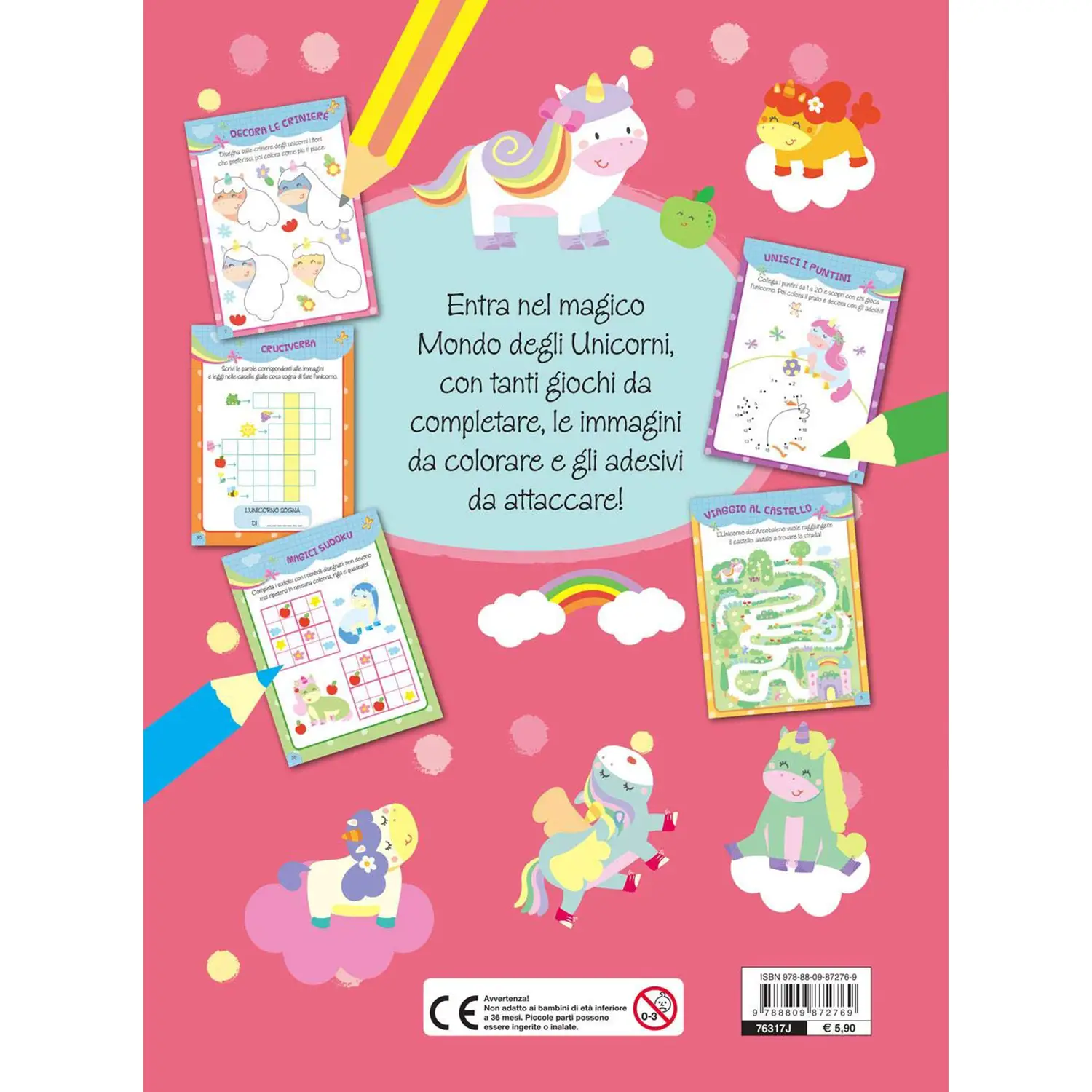 Albo activity a tema unicorni – Libro di attività pensato per bambini dai 5 anni, dedicato al mondo colorato degli unicorni e delle creature magiche. Un mix coinvolgente di giochi educativi e fantasia.