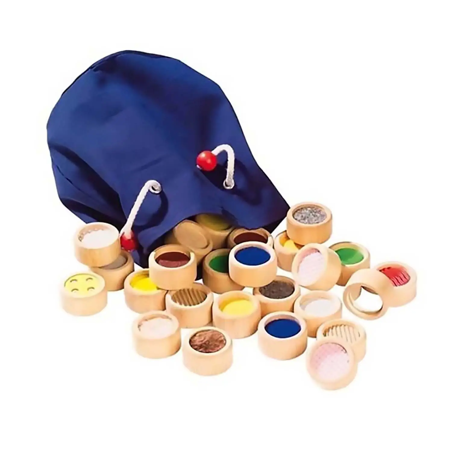 - ✅ 32 dischetti in legno con diverse texture: morbido, liscio, ruvido.