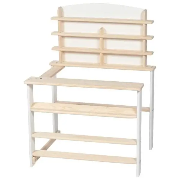 Questo Mercatino con Penisola è un angolo gioco interamente realizzato in legno massello naturale levigato con bordi arrotondati, ideale per i bambini che amano giocare a fare i piccoli commercianti. È un’ottima aggiunta a qualsiasi stanza dei giochi o a un’area di gioco all’aperto. Nota: gli accessori in foto non sono inclusi.