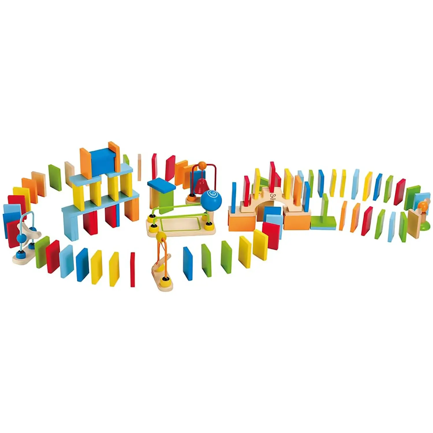 - ✅ Oltre 100 pezzi in legno colorato per costruire piste di domino infinite e stimolanti.
