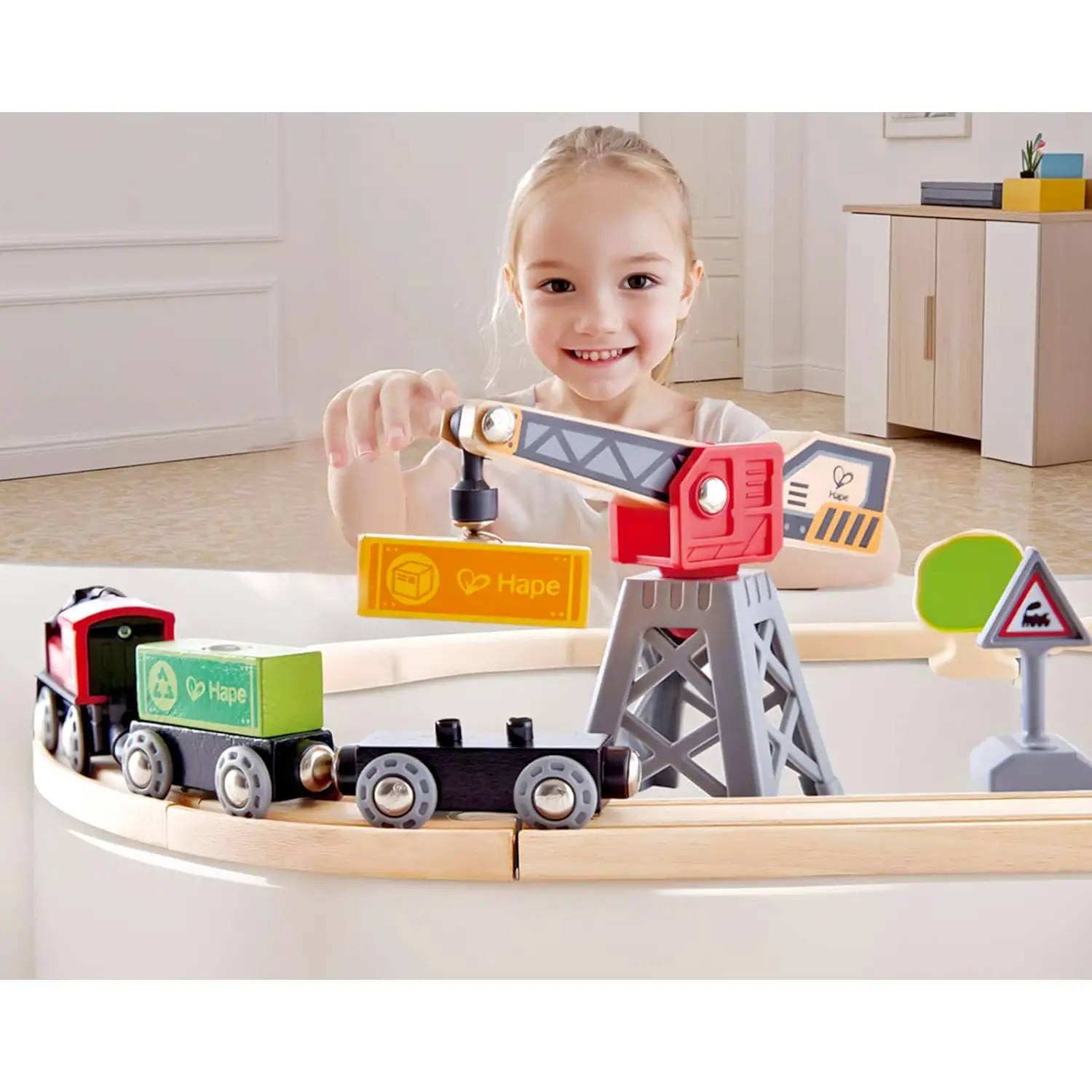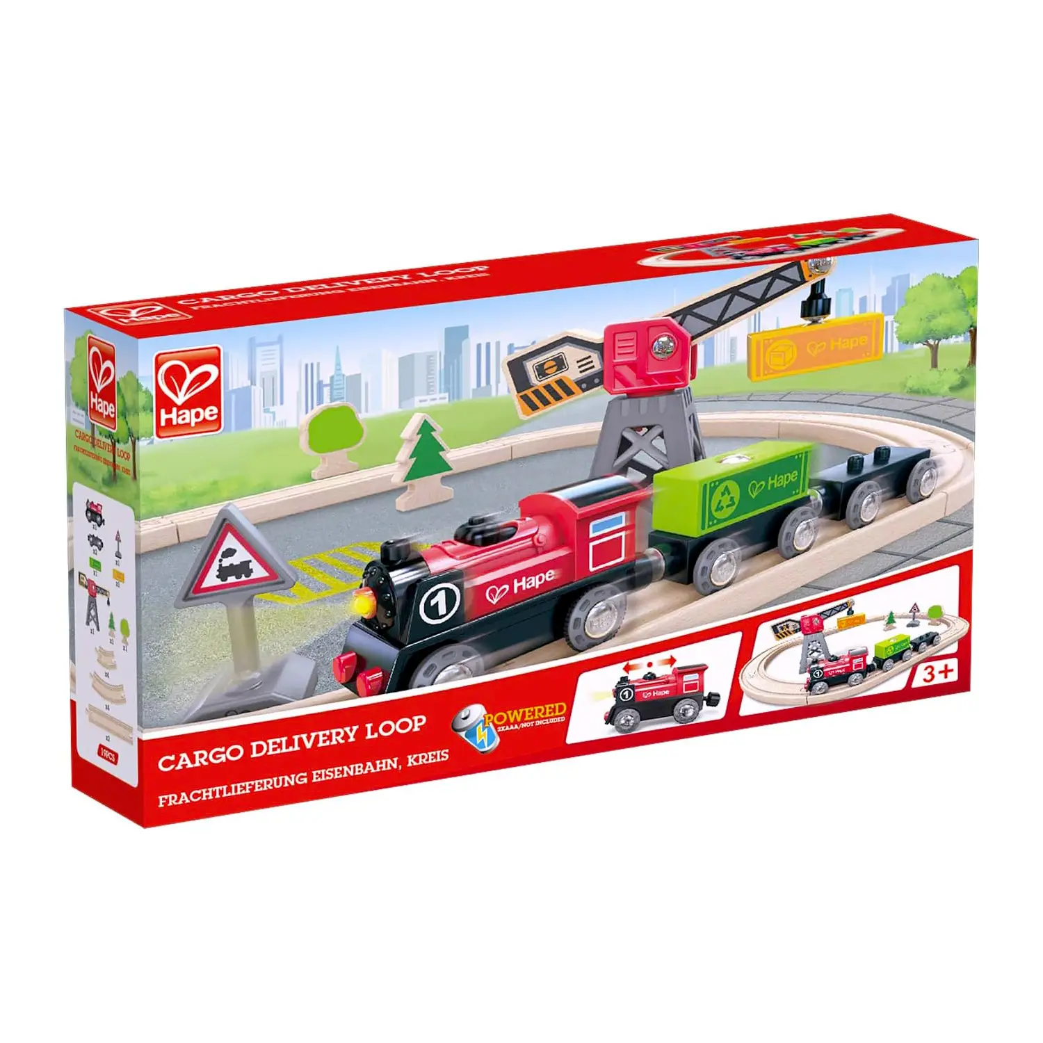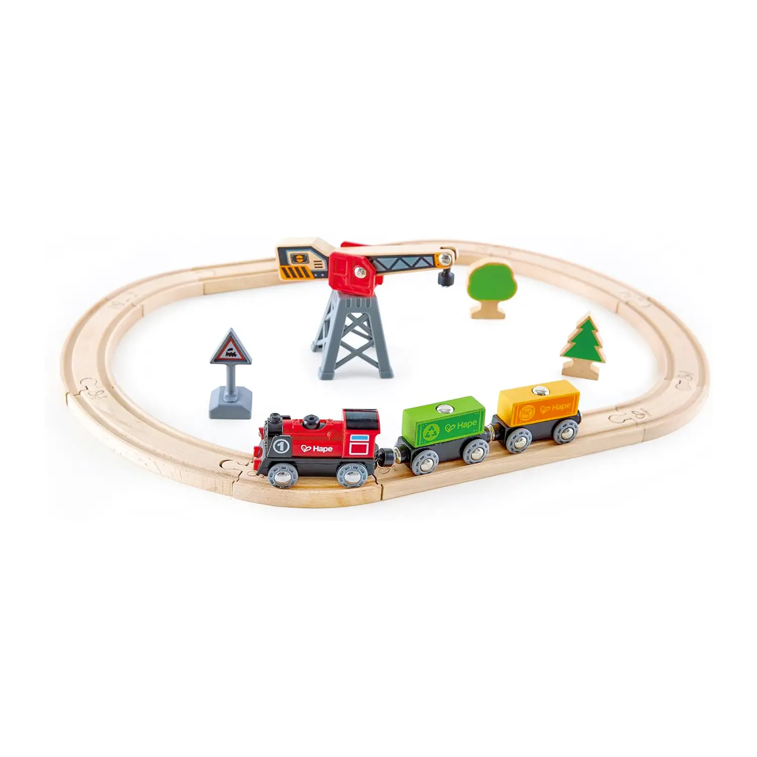 Set trenino educativo Hape La pista con trenino a batteria e gru Hape è un gioco completo che unisce costruzione, movimento e fantasia, ideale per bambini dai 3 anni in su.
