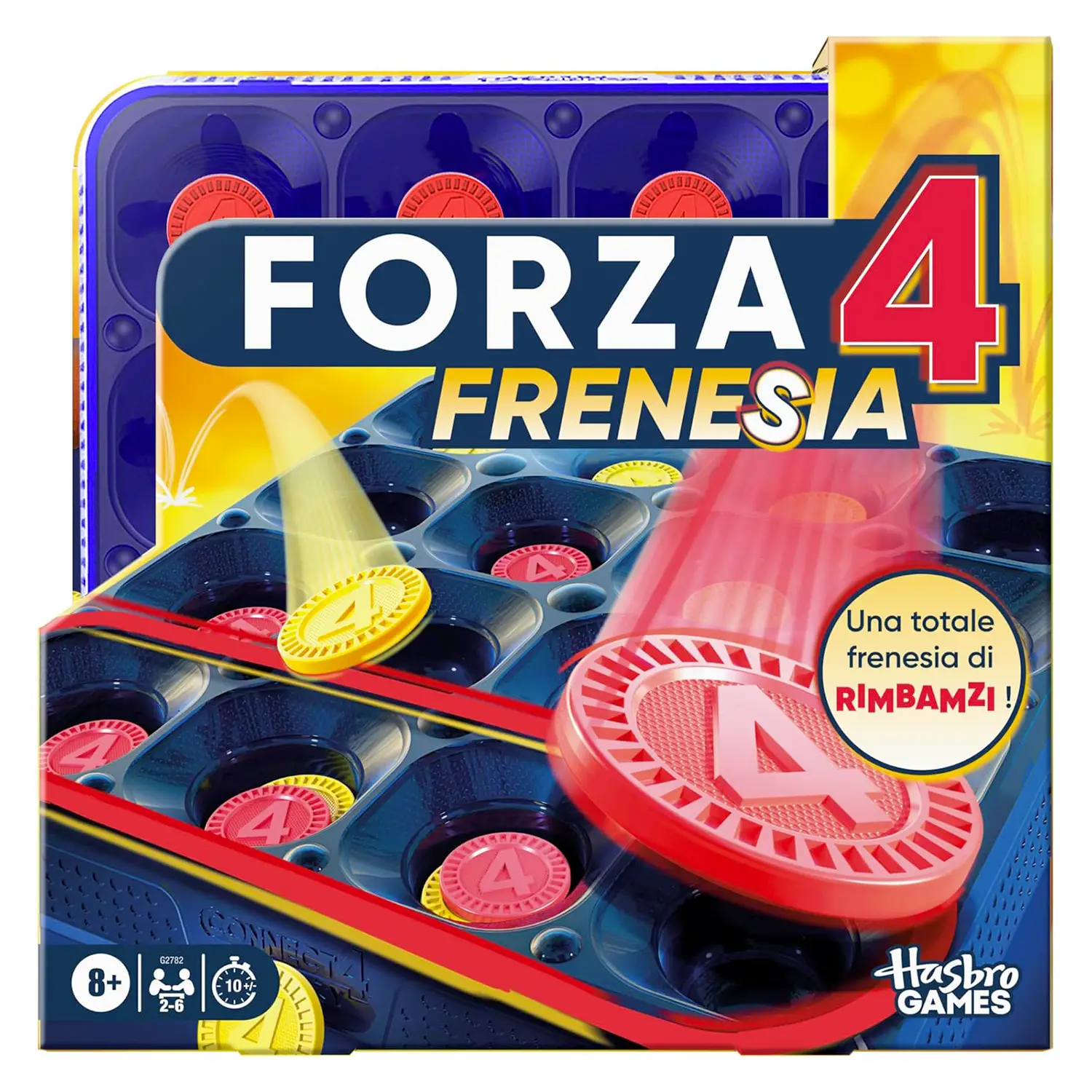 Gioco Forza 4 Frenesia portatile - Rivisitazione frenetica del classico Forza 4. Tutti giocano contemporaneamente in una sfida a rimbalzo: i dischetti vanno fatti saltare sulla superficie verso la griglia. Azione veloce, caotica e strategica.