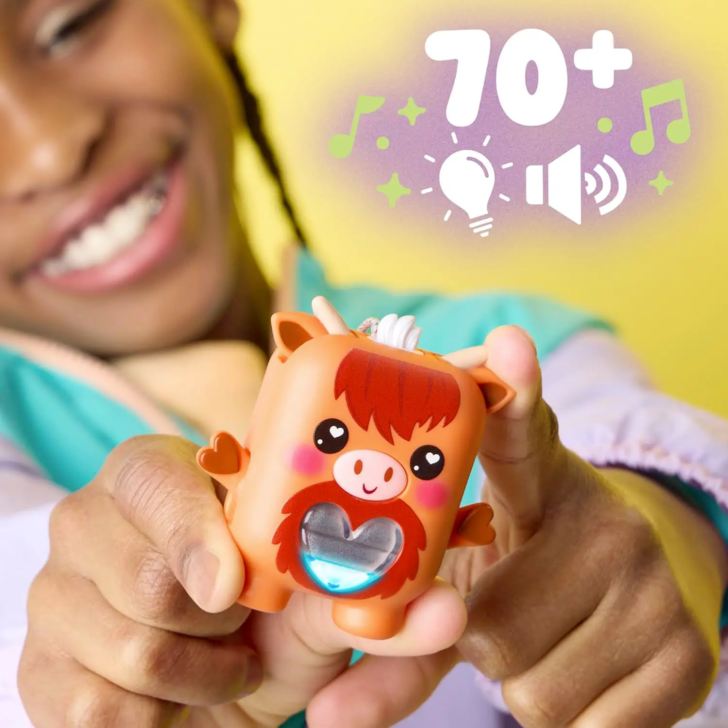 Cucciolo Elettronico Portatile Cowbert è la Nano-mal mucca Highlander di Hasbro, un adorabile cucciolo elettronico tascabile alto 6,9 cm che unisce gioco interattivo, amico digitale e funzione antistress, perfetto da portare sempre con sé.