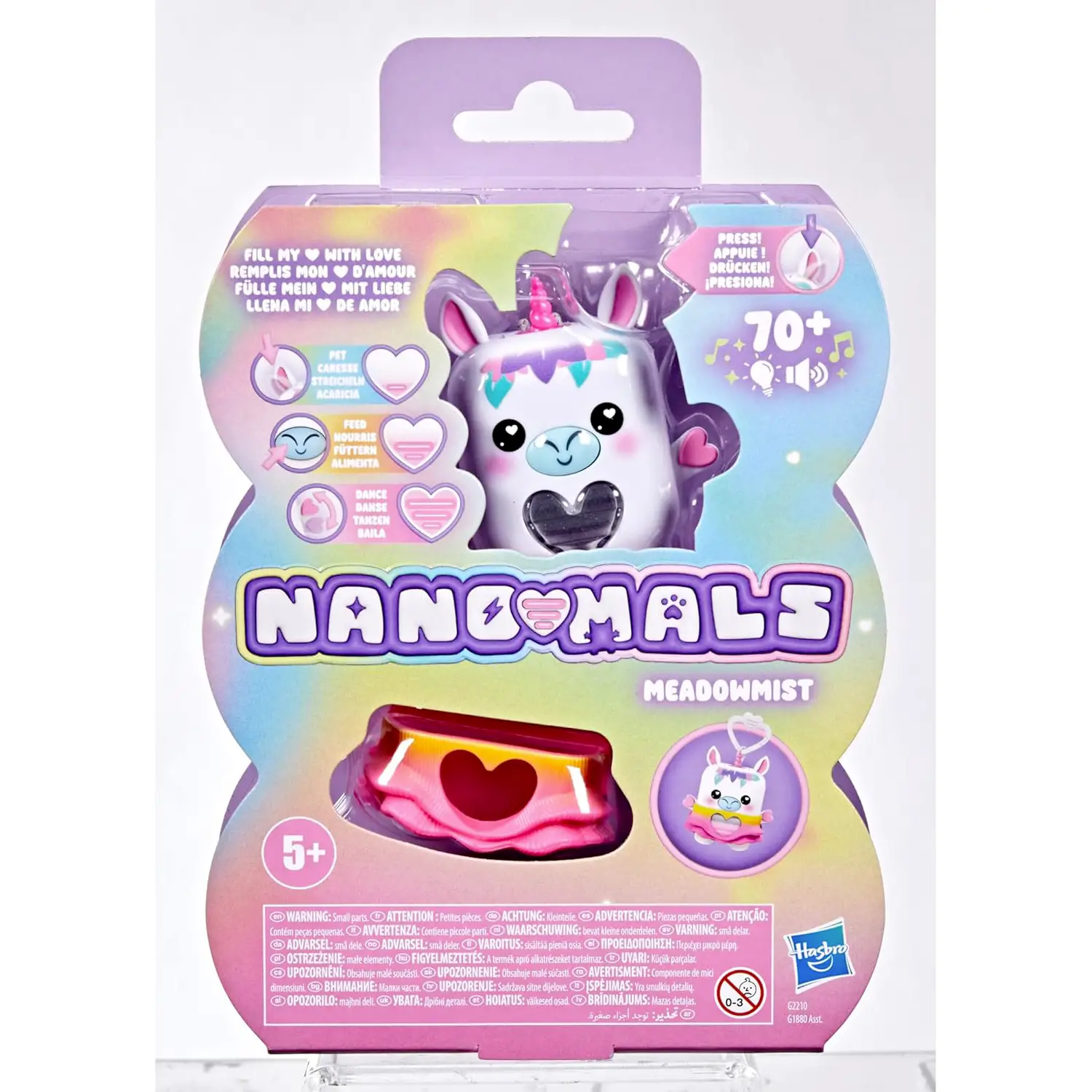 Cucciolo Elettronico Portatile Meadowmist è la Nano-mal unicorno di Hasbro, un adorabile cucciolo elettronico tascabile alto 6,9 cm che combina gioco interattivo, amico digitale e funzione antistress, ideale da portare sempre con sé.