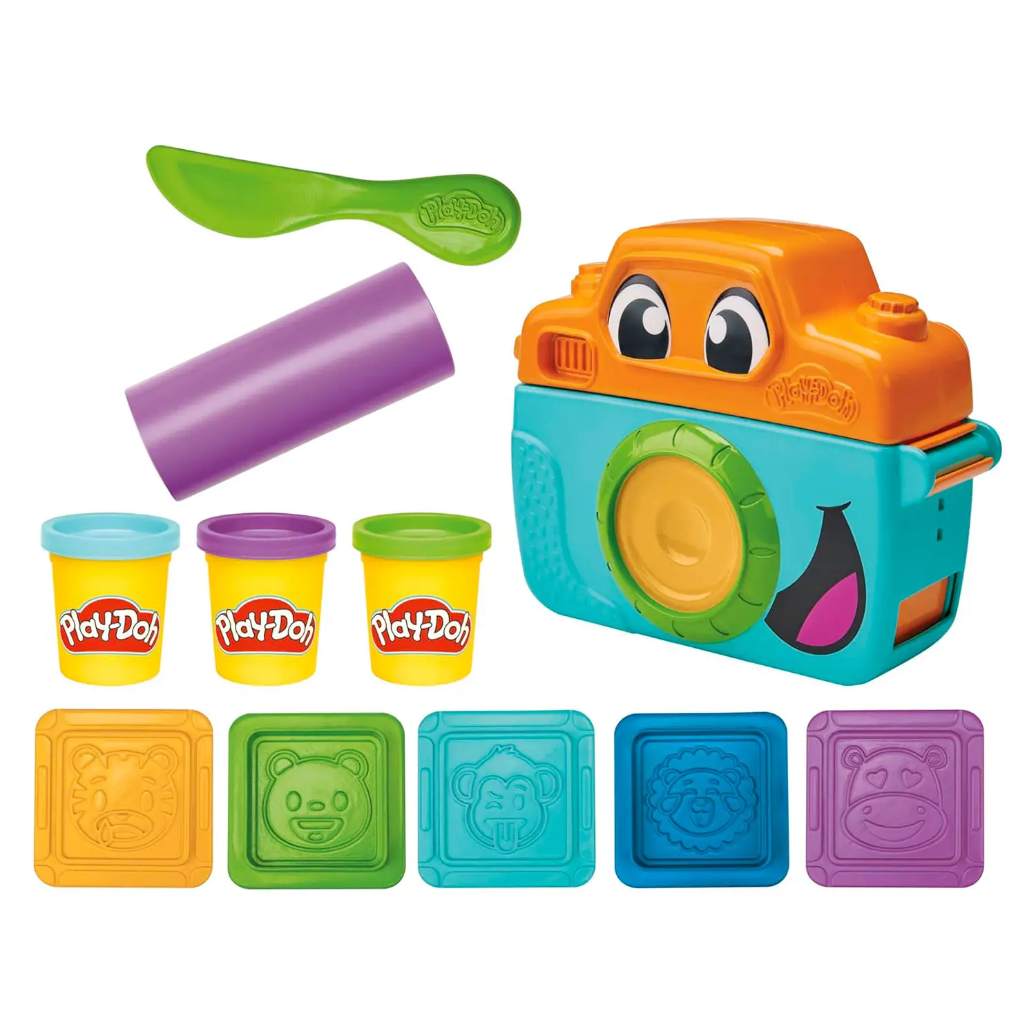 - ✅ Set creativo Play-Doh con macchina fotografica giocattolo e 5 stampini a tema animali.