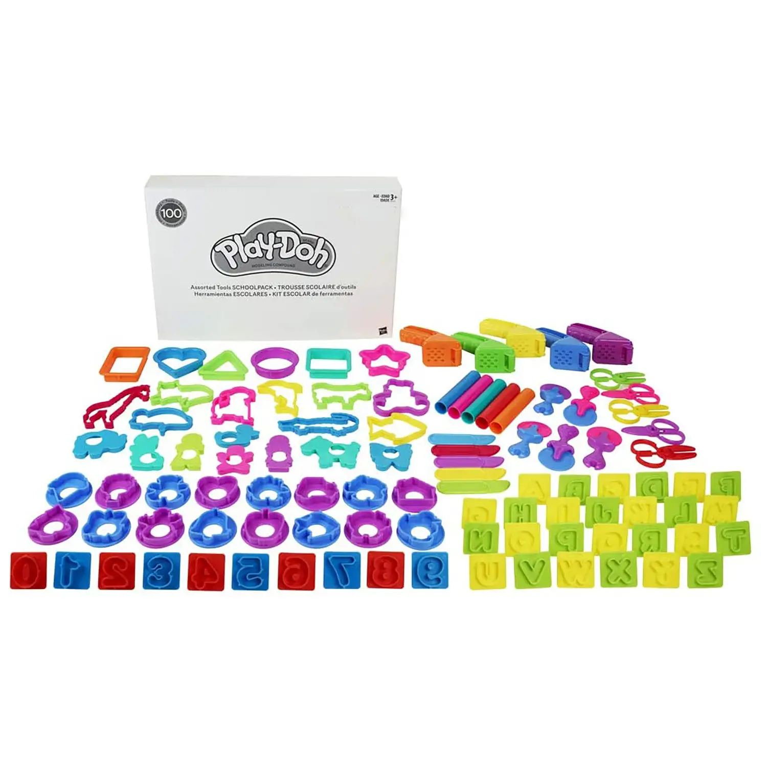 Play-Doh Tools Schoolpack - 100 Attrezzi Assortiti per Tagliare, Stendere, Stampare e Spremere