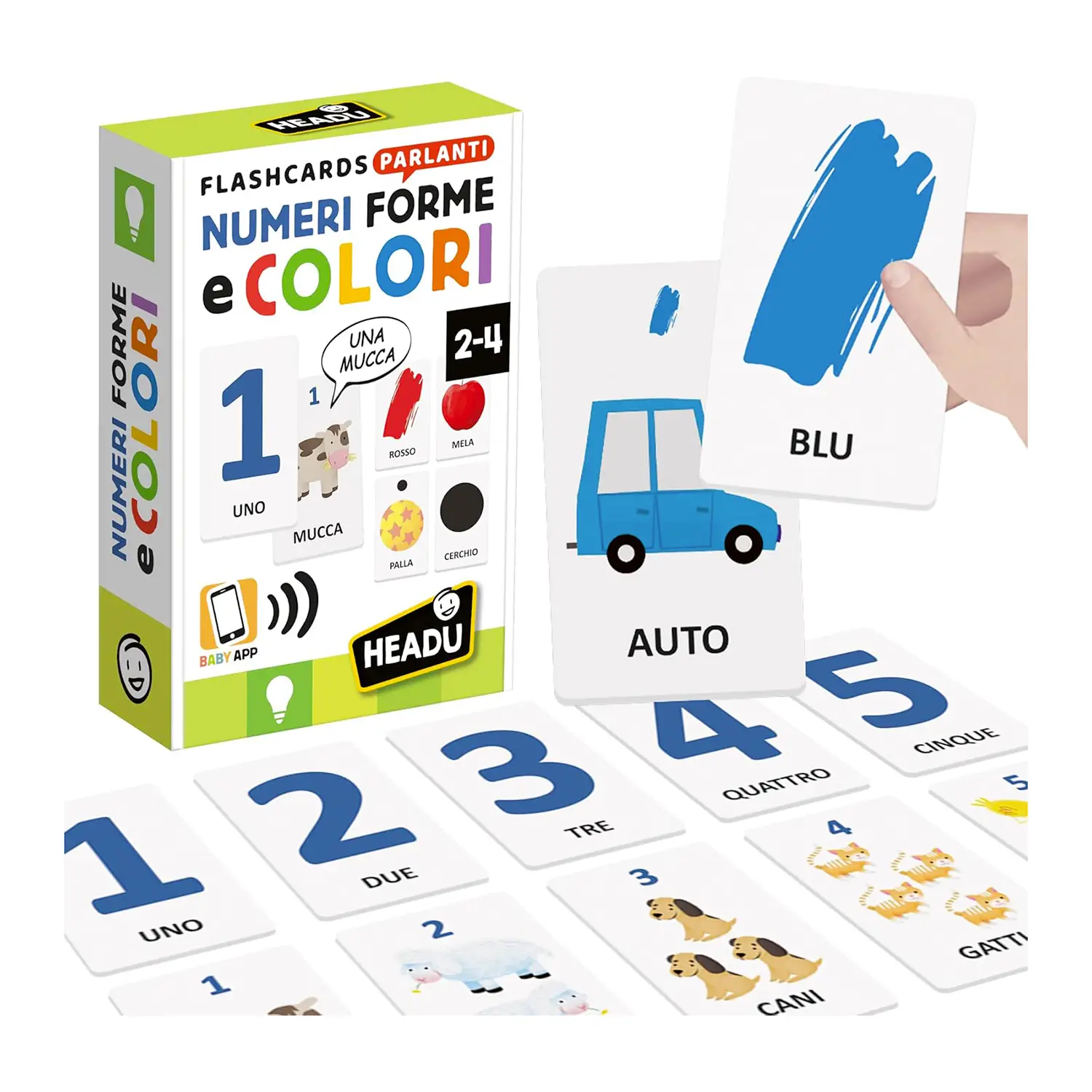 Flashcards Interattive Headu Numeri, Colori e Forme Divertenti e stimolanti, le grandi flashcards interattive aiutano i bambini dai 2 ai 4 anni a riconoscere colori, distinguere forme e imparare numeri e quantità.