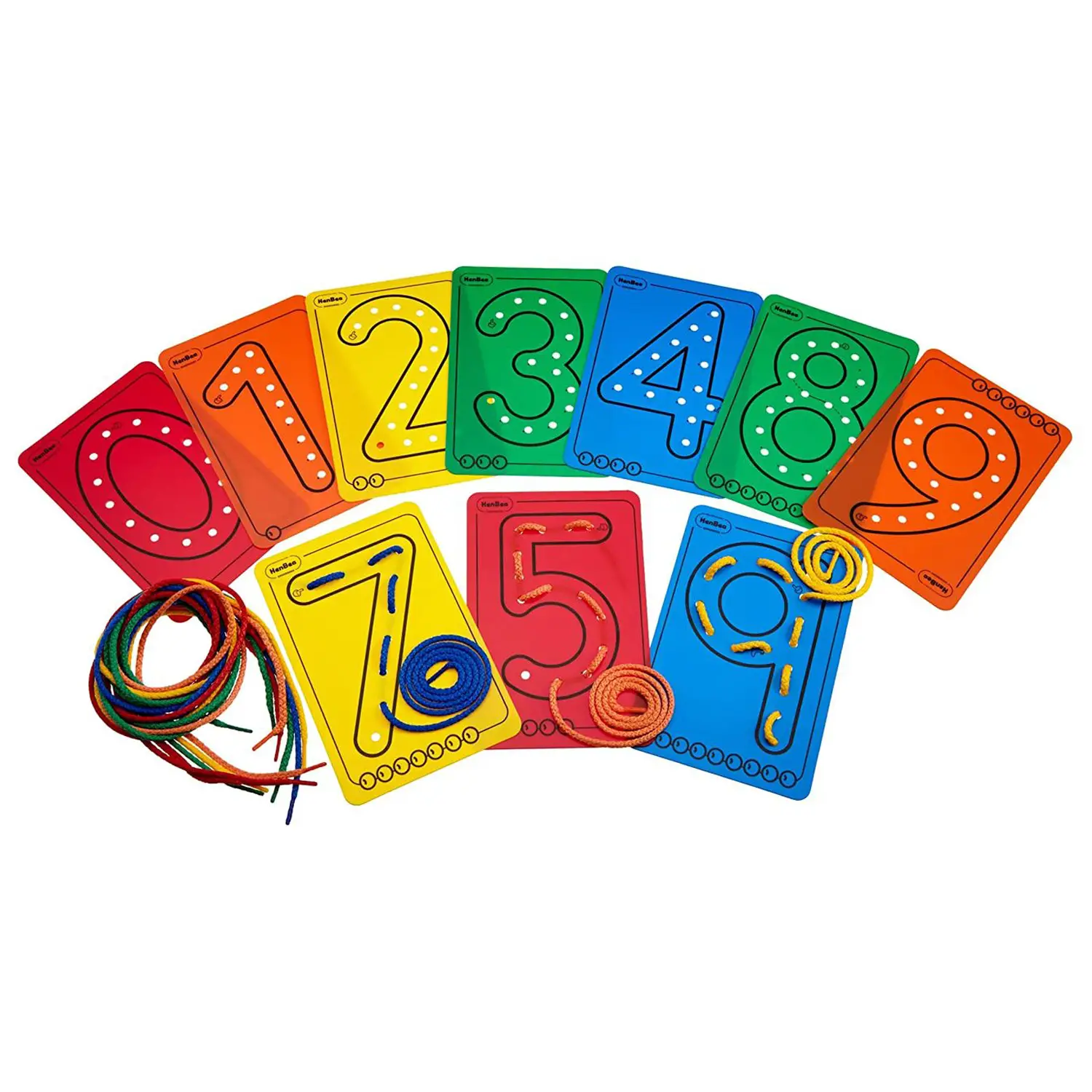 - Sviluppo della motricità fine: Infilare le stringhe lungo i numeri aiuta i bambini a sviluppare una maggiore destrezza e coordinazione mano-occhio.