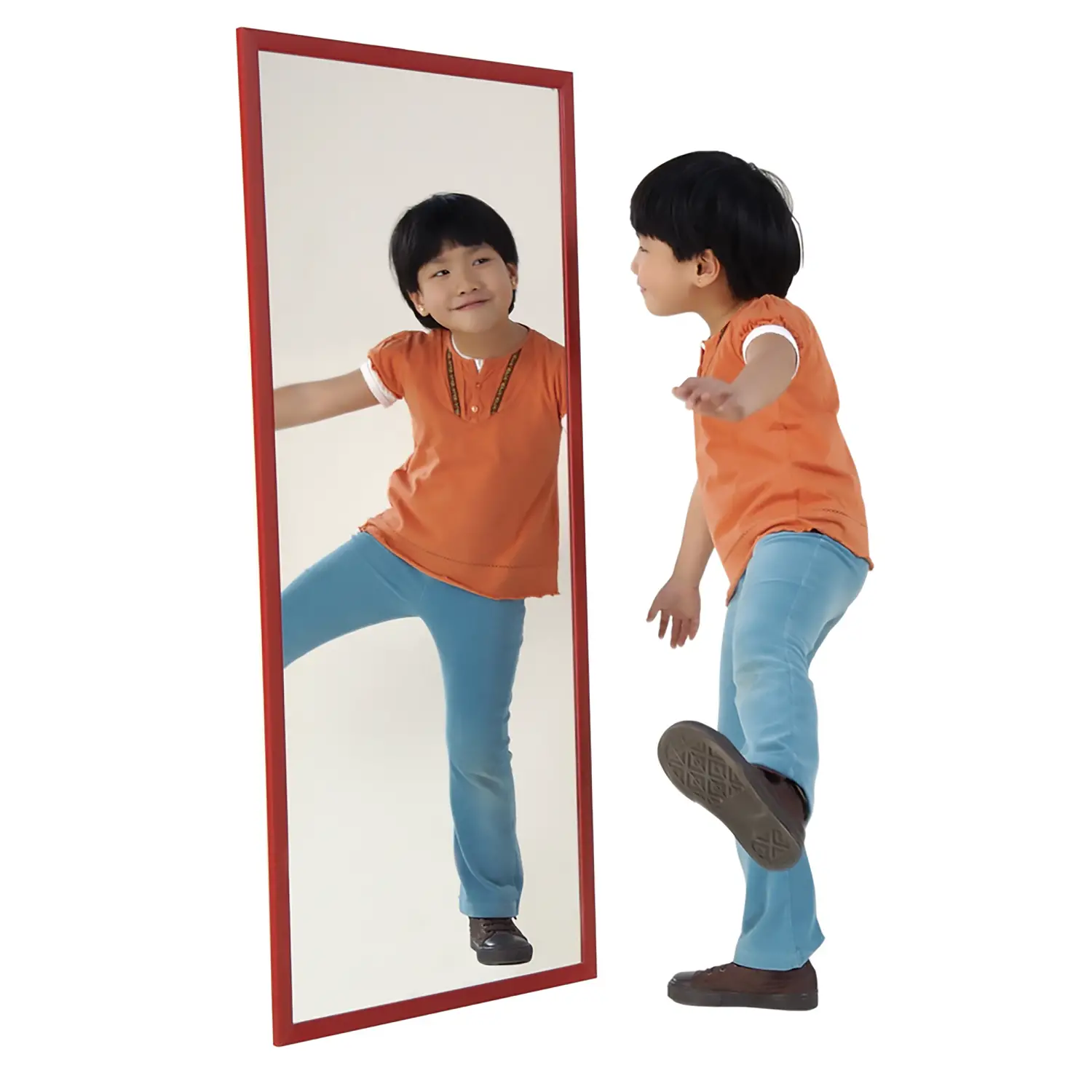- ✅ Specchio con cornice in legno verniciato rosso, ideale per scuole e ludoteche, sicuro e didattico.