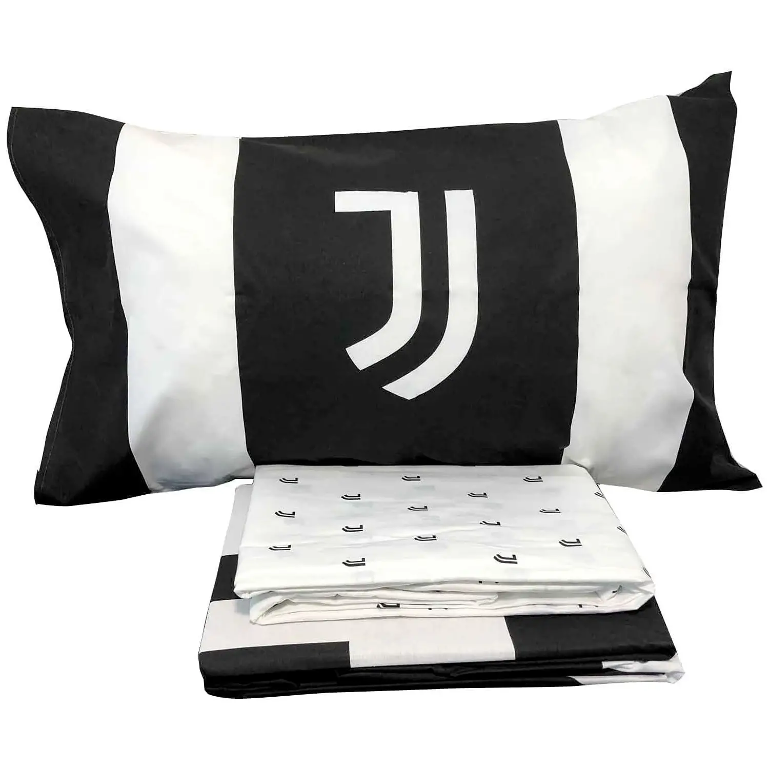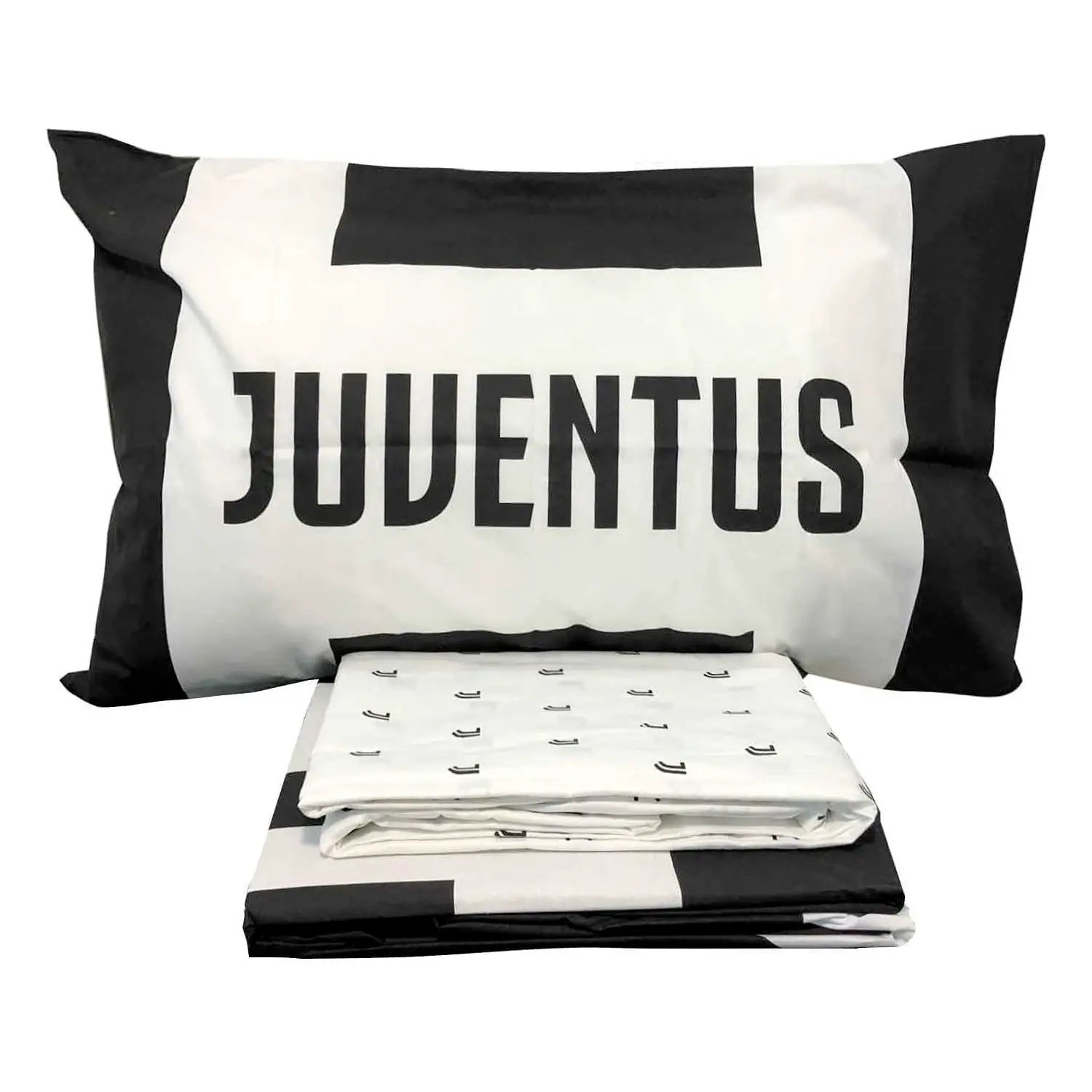 Completo Letto Ufficiale Juventus FC Set lenzuola 1 piazza e mezza con design bianco e nero e logo ufficiale Juventus FC su lenzuolo e federa. Stile elegante e sportivo, ideale per tifosi che vogliono arredare la camera con i colori della squadra del cuore.