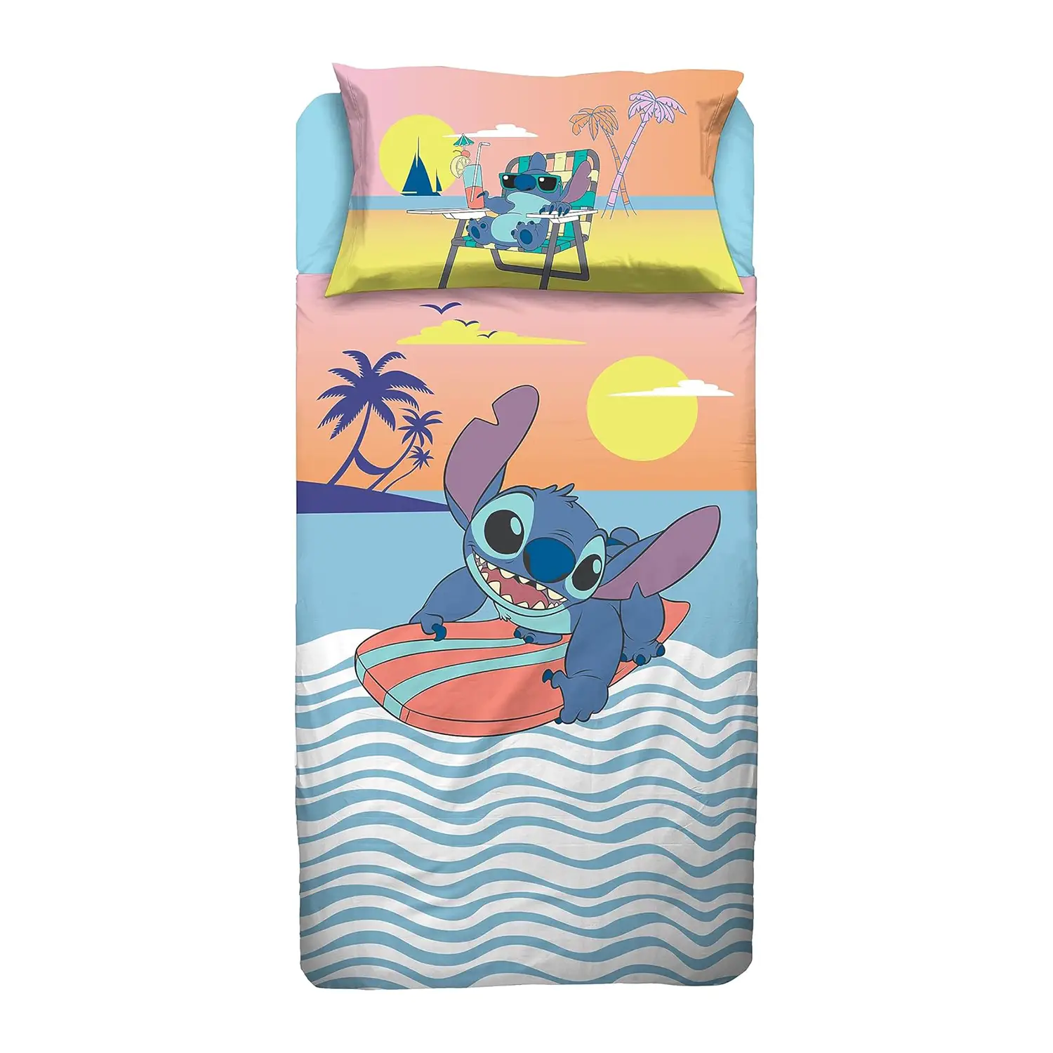 - ✅ Completo letto singolo Disney ufficiale con stampa Stitch, perfetto per la cameretta dei bambini.