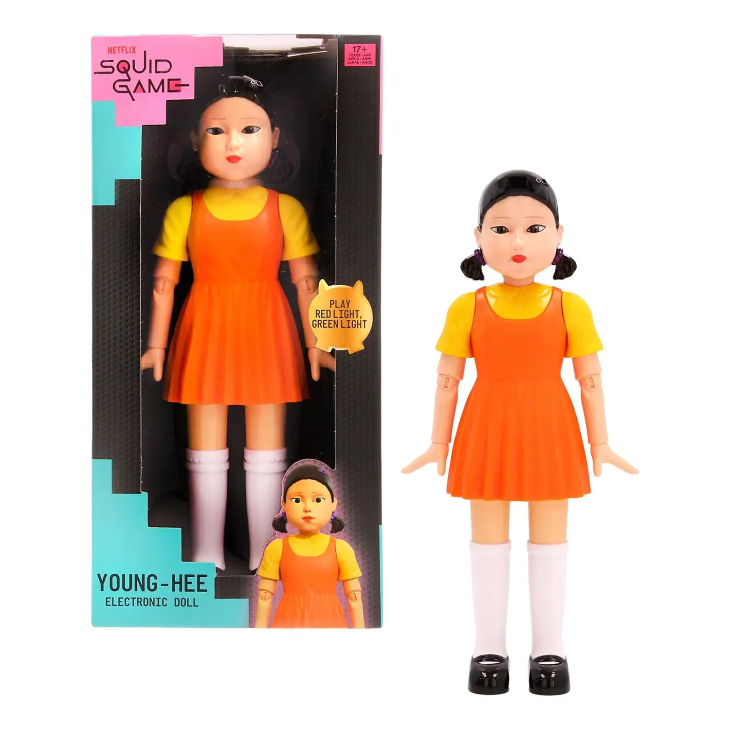 Young-Hee, la bambola di Squid Game: Porta a casa l’emozione di una delle serie Netflix più popolari con questa accurata riproduzione di Young-Hee. Perfetta per ricreare l’iconico gioco “Un, due, tre, stella!”, proprio come nell’episodio iniziale.