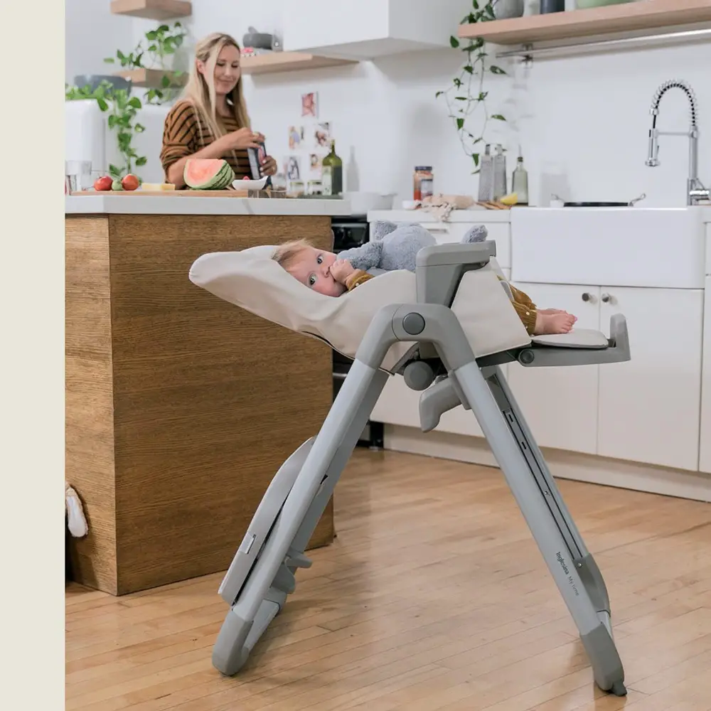 Schienale e pedana reclinabili Schienale e pedana completamente reclinabili permettono al bambino di riposare dopo la pappa. Ideale come seggiolone pappa reclinabile, offre posizione confortevole sia durante il pasto che nei momenti di relax.