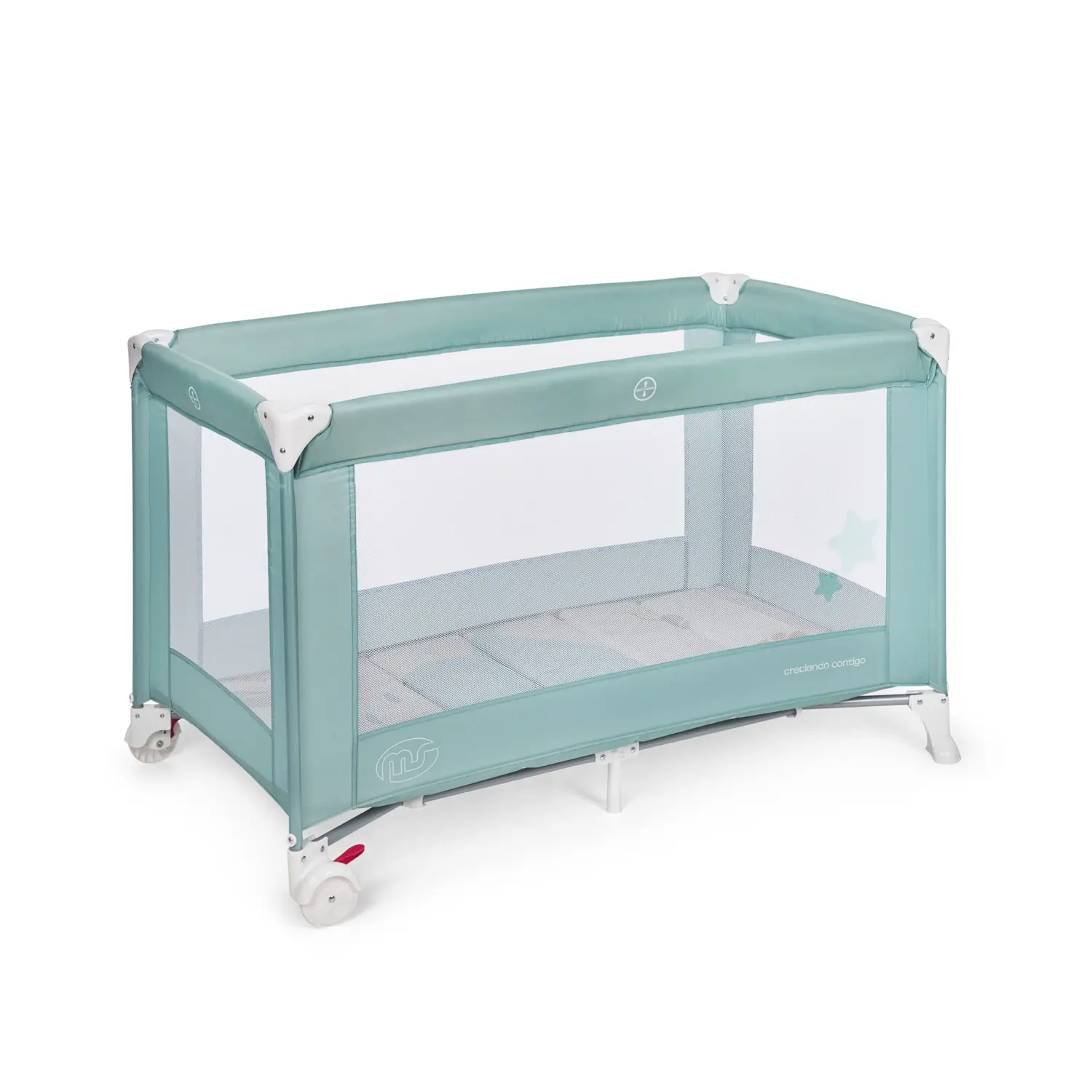 Questo lettino da viaggio sembra offrire praticità e versatilità, con la sua capacità di essere utilizzato sia come lettino che come box. La sua compattezza e la presenza di ruote lo rendono ideale per il trasporto durante le fughe o i viaggi. Il materasso in laminato contribuisce al comfort del bambino durante il sonno.
