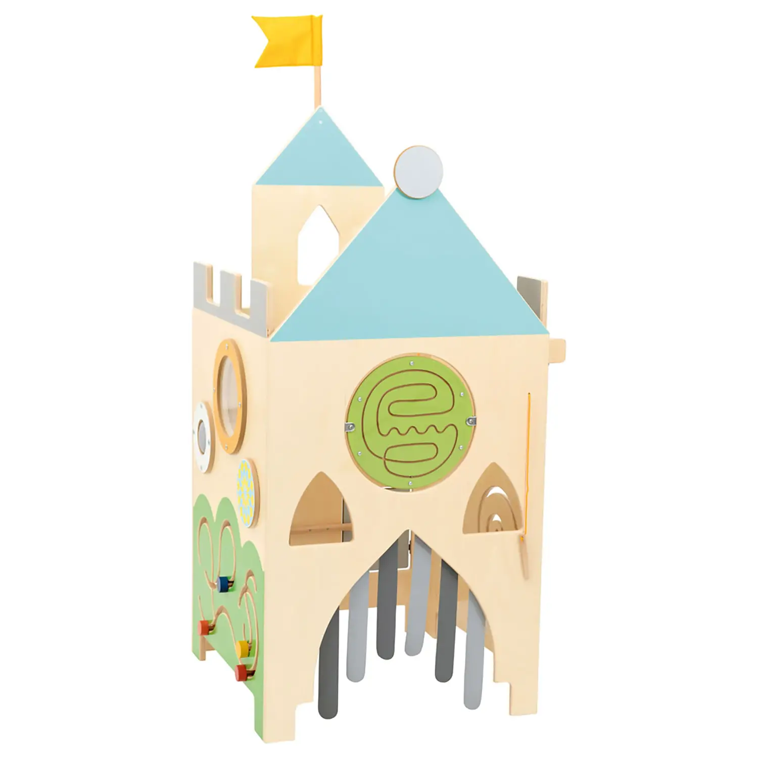 Bellissimo angolo multiattività equipaggiato con tante attrazioni con elementi manipolativi che incoraggiano il gioco attivo, l’osservazione e la sperimentazione: labirinti, porte, elementi girevoli consentono di praticare le abilità e la destrezza manipolative. E’ anche un rifugio al quale accedere dal grande portale per giocare a nascondino o semplicemente per isolarsi alla ricerca di momenti di relax. Idoneo anche come gioco collettivo per 3⁄4 bambini contemporaneamente.