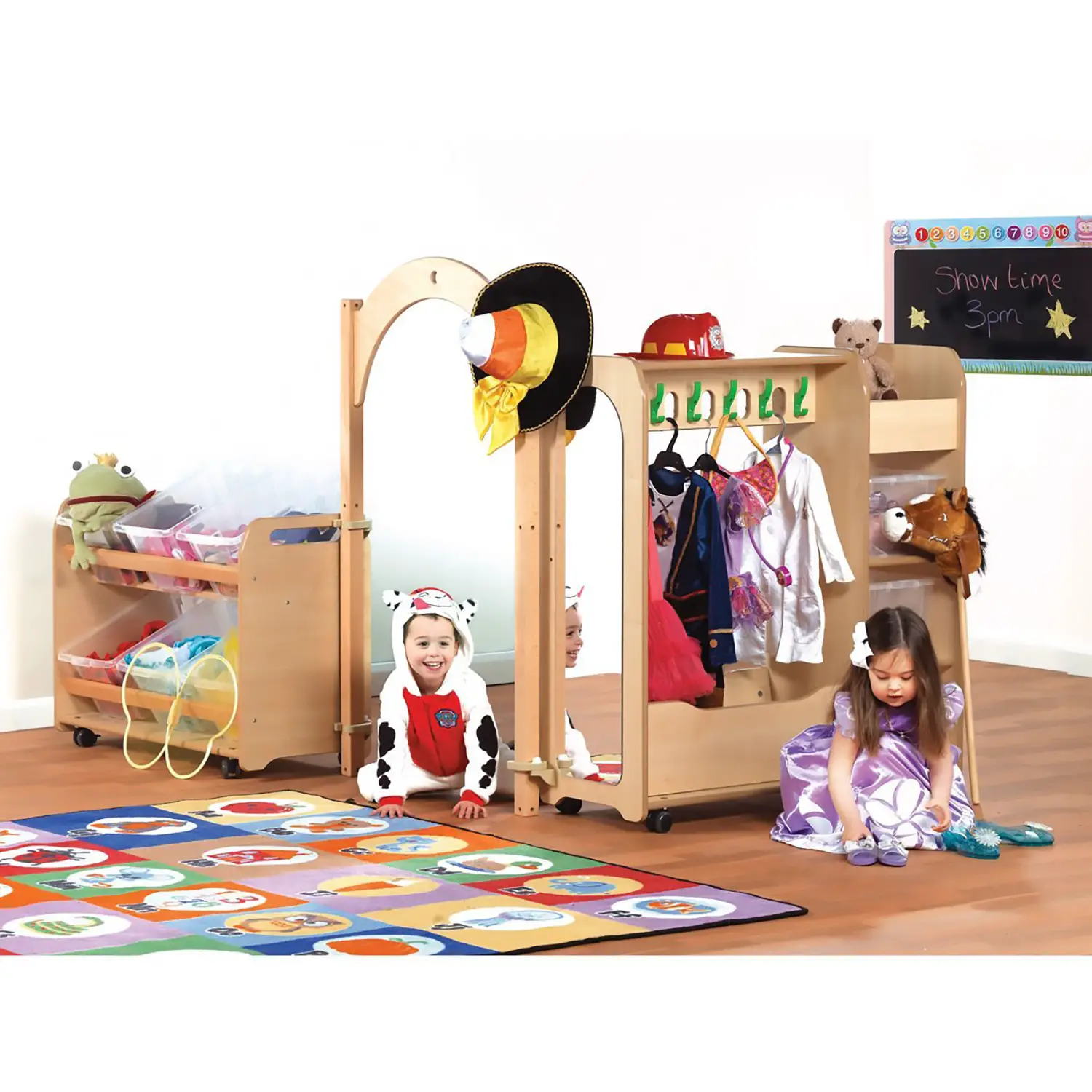 Autoespressione e Creatività: L’abilità di travestirsi e assumere diversi ruoli è fondamentale per lo sviluppo emotivo e sociale dei bambini. Questo spazio fornisce gli strumenti per sperimentare liberamente, nutrendo la loro capacità espressiva.