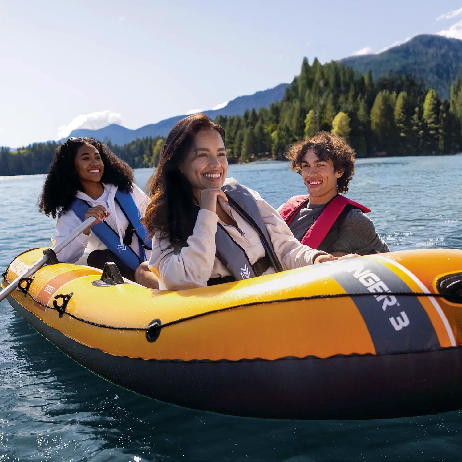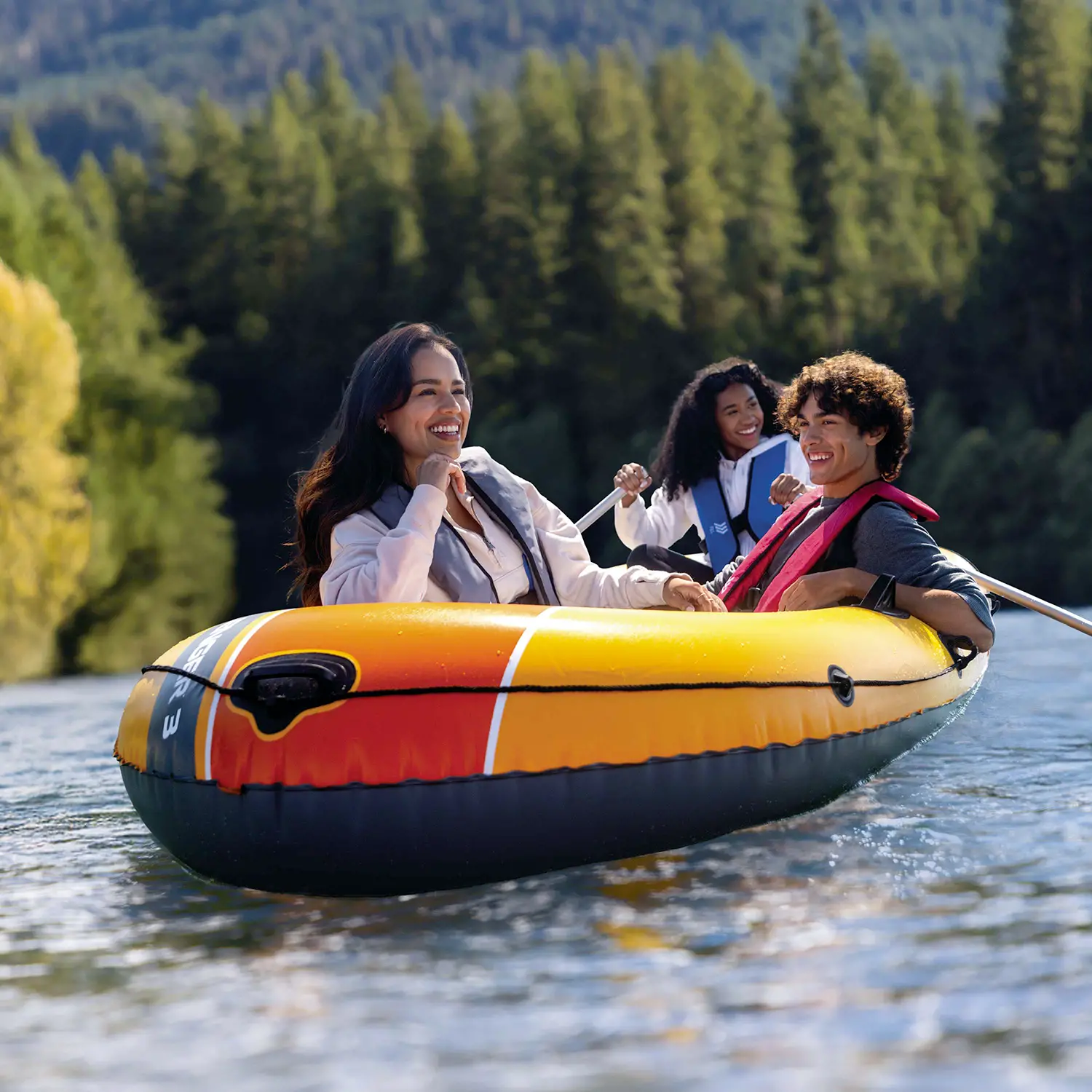 - ✅ Spazioso gommone per tre adulti, ideale per avventure estive, realizzato in PVC resistente e sicuro.