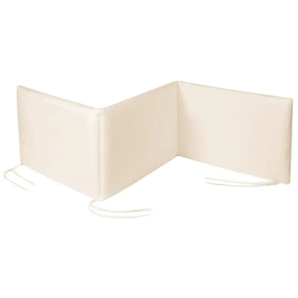 Paracolpi imbottito 3 lati per lettino con spondine. Protegge il bambino dagli urti contro le spondine del lettino durante il sonno. Dotato di laccetti perimetrali per un perfetto ancoraggio. Realizzato con fodera esterna in tessuto 100% cotone e imbottitura 100% fibra di poliestere termolegata.